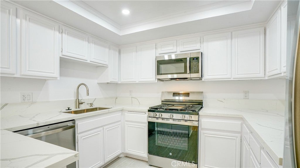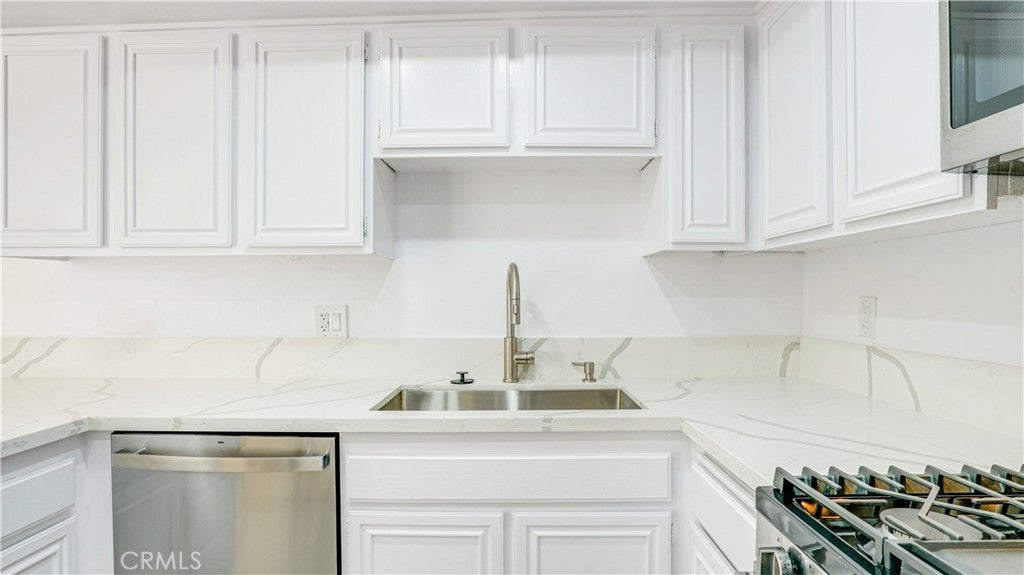 This stunning 2-bedroom, 2-bathroom condo has been fully remodeled and offers a perfect blend of modern finishes and comfortable living. Step inside to discover updated vinyl flooring throughout, recessed lighting, and a bright, open floor plan. The kitchen features quartz countertops, updated cabinetry, and stainless steel appliances, creating an ideal space for cooking and entertaining. Both bedrooms are spacious with ample closet space, and the bathrooms have been tastefully updated with contemporary fixtures. Located in a gated community with 24-hour security, residents enjoy peace of mind along with fantastic amenities including a pool and spa. The HOA covers water, trash, and sewer, making living here both convenient and affordable. This move-in-ready condo offers the best of comfort, style, and value in Canoga Park.