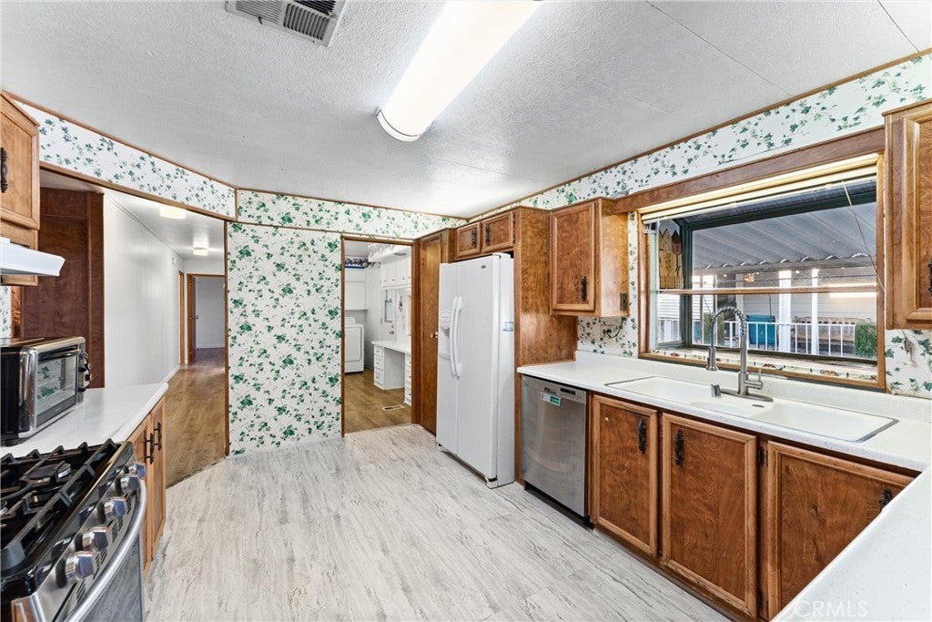 Welcome to #80 at Sunkist Gardens, a vibrant 55+ community in the heart of Anaheim! This 2-bedroom, 2-bath home has a great flowing floor plan you don’t want to miss! Seller has taken care of the major systems, including new a/c and heating system and new tankless water heater. Along with replaced roof, laminate flooring, all plumbing, stove/oven, and dishwasher too. You just need to update the inside to your liking. Huge inside laundry room, lots of storage, light and bright living room and family room. Nice size kitchen with garden window too. Spacious walk-in storage shed at the end of your extra-wide driveway. The location is unbeatable—just minutes from Disneyland, Angel Stadium, Honda Center, and the exciting new OCVibe development, putting dining, music, sports, and entertainment right at your doorstep. Life at Sunkist Gardens is all about connection and enjoyment. Join in on community activities like bingo, bunco, exercise classes, game nights, and live big band music—or simply relax by the pool and spa. The clubhouse offers a full kitchen, library, pool tables, jukebox, and plenty of space to gather with friends. With outdoor BBQs, shaded tables, and lush surroundings, there’s always something to enjoy. This home and community offer the perfect blend of comfort, convenience, and lifestyle—don’t miss this opportunity!