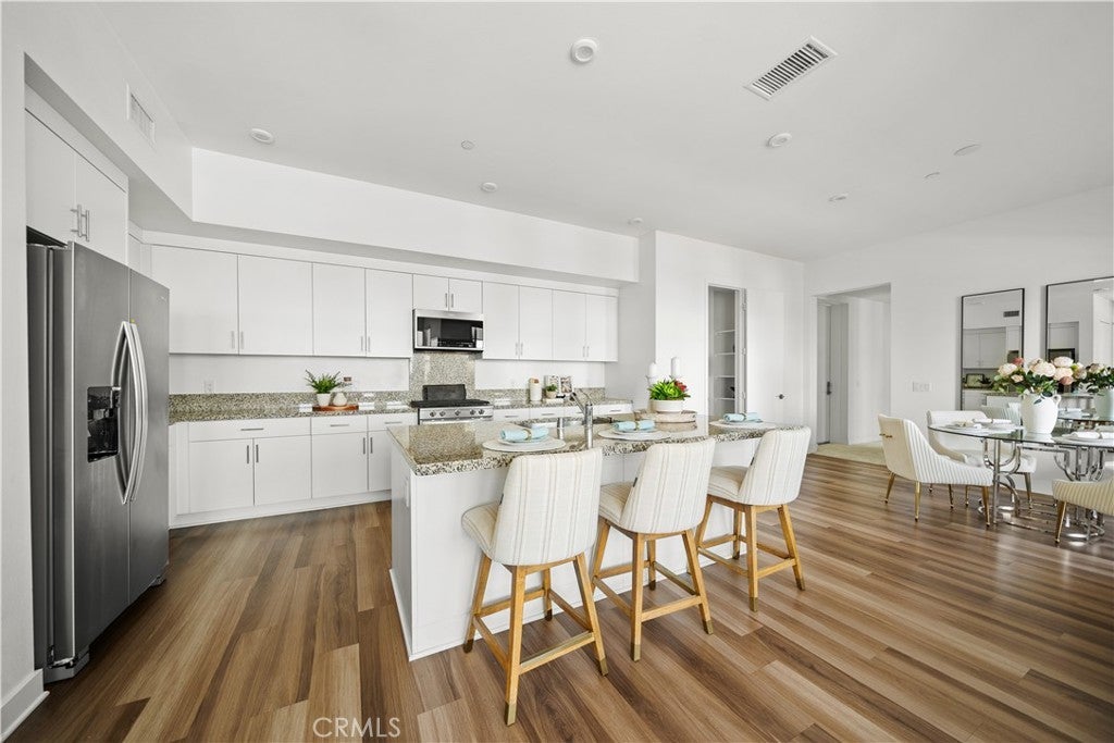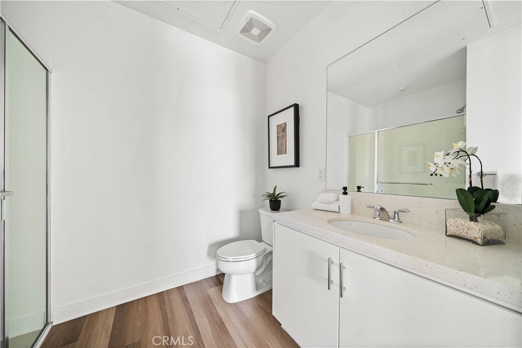 Located at 100 west Toll Brother Community and Unit is set behind a gated entry with an exclusive recreation center that features a pool, spa, and BBQs. Apartment with a 2-car attached garage, patio/balconies extend the interior living space on one level home and all two bedrooms with its own bathroom. Whole house upgraded with wood flooring, full back spalsh and shower tile. Enjoy nature and bike or hike your way to the coast along the Santa Ana River Trail which connects to Huntington Beach and Pier. Only five to ten mins drive to Anaheim Garden Walk, Old Towne Orange, Disneyland, The Honda Center, Angel Stadium. Great for Students who have a short commute to Chapman University, University of California Irvine, and California State University, Fullerton. Easy access to major freeways and the ARTIC station. Toll Brothers New Home you must see!