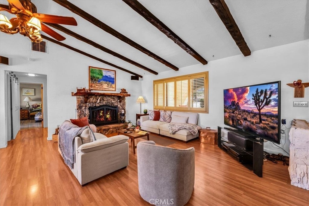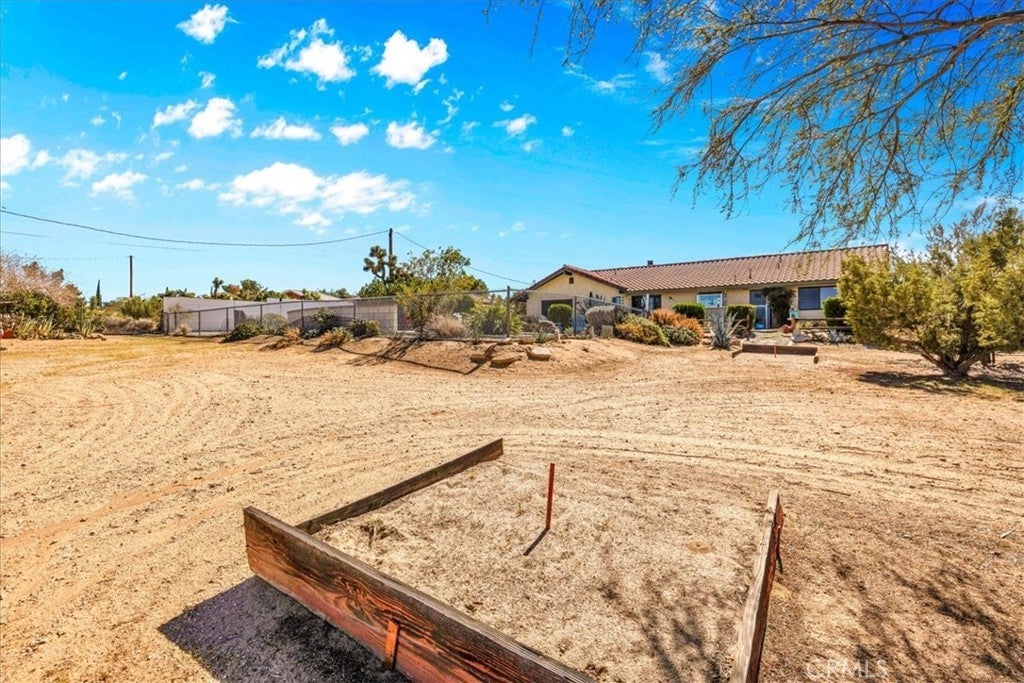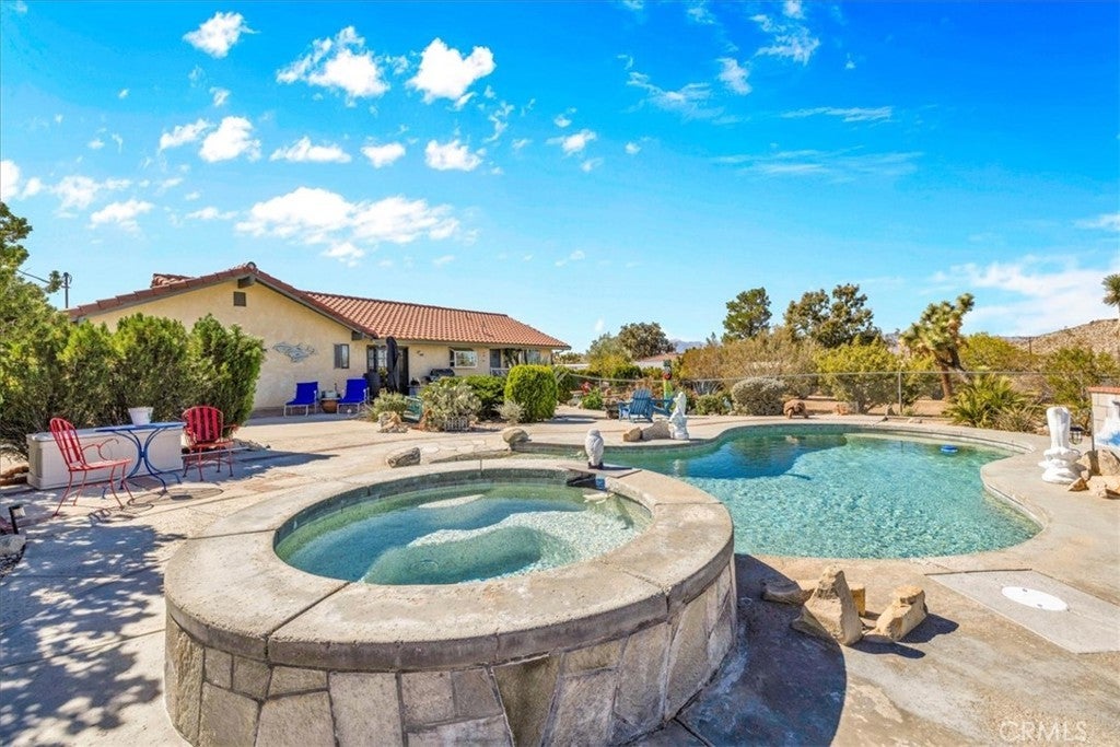Welcome home to the desert living with space to breathe! Nestled on an expansive 0.87 acre lot in the heart of Yucca Valley, this inviting residence offers both comfort and wide-open possibilities. With its ideal blend of indoor/outdoor living and serene surroundings, you’ll experience the best of the high desert. Key features: Located on a generous parcel of land, offering privacy and room for outdoor enjoyment. Bright and welcoming living spaces with large windows that bring the desert light in. Outdoor shower after a fun day enjoying the pool and spa. A well-appointed kitchen with ample counter/cabinet space, suited for entertaining or everyday life. Comfortable bedrooms and baths, including a spacious primary suite retreat. Indoor/outdoor flow–perhaps a covered patio or deck, perfect for morning coffee or starlit evenings. Desert-scaped yard with low-maintenance appeal, and plenty of room for gardens, RV parking, or future expansion. Convenient access to local conveniences in Yucca Valley, with the natural beauty of the region just moments away. Why You’ll Love it: This home brings together a comfortable footprint--3 bedrooms, 2 baths--with a large lot that offers flexibility: whether it's outdoor entertaining, a workshop, desert gardening, RV parking, or simply room to stretch out. Natural light, mountain views, and the roomy yard make this a standout in the Sky Harbor Ranchos neighborhood. Set in one of the region’s desirable zip code neighborhoods, this property offers the best of both worlds: a quiet, expansive lot, yet close enough to the amenities of town and the scenic wonders of the high desert.