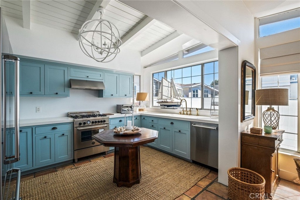 Experience the ultimate Newport Beach lifestyle in this serene, sun-drenched waterfront bungalow overlooking the Back Bay. Every moment here feels like a coastal daydream — from coffee at sunrise on your wraparound porch to golden-hour dinners al fresco, as the sun melts into the water. This renovated 2-bed, 2.5-bath retreat blends modern design with timeless coastal charm. Step inside to an open-concept living area with beamed ceilings, antique Spanish tile floors, and a cozy gas-burning fireplace. Large picture windows invite endless bay views and bathe the space in natural light. The chef’s kitchen is a showpiece of craftsmanship — featuring a full Bertazzoni Italian appliance suite, custom cabinetry, and designer finishes. Every inch of this home was reimagined with intention: solid wood doors, Thomas O’Brien lighting, bronze hardware by Ashley Norton, and curated textiles by Kelly Wearstler. All bathrooms were recently redesigned with hand-crafted tilework, luxe fixtures, and ample storage. A dedicated office nook overlooks the bay — perfect for those who work (or daydream) with a view. Step outside to a wraparound waterfront deck designed for effortless entertaining — from evening wine by the firepit to brunches overlooking the private dock. The home is fully enclosed with new vinyl fencing and includes a covered parking space, Sonos sound system with in-wall speakers, a security system, and even a private dog run. Located on prime second-row waterfront, you’ll enjoy views with below-market space rent — and best of all, no property taxes! As part of Bayside Village, residents enjoy resort-style amenities: two sparkling pools, two spas, gym, firepits, BBQ areas, a fenced dog park, and a clubhouse. You’re just minutes from Balboa Island, Fashion Island, and Newport’s best beaches and dockside dining. This isn’t just a home — it’s a lifestyle of waterfront luxury, effortless entertaining, and sunset serenity in the heart of Newport Beach.