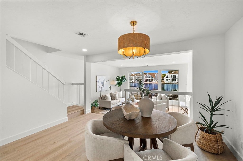 Set against the pristine lagoon of Huntington Harbour, this beautifully renovated three-bedroom, two and a half bath townhome in Seagate offers the ultimate waterfront lifestyle. Launch your kayak from your private patio and enjoy breathtaking sunsets. Inside, coastal charm meets modern upgrades: luxury vinyl plank flooring, recessed lighting, fresh paint, and a brand-new kitchen with quartz countertops, custom cabinets, and stainless steel appliances. The sunken living room, featuring a striking fireplace, flows into a spacious dining area perfect for entertaining. Off the kitchen, a family room with a slider opens to the front courtyard patio. The waterfront living room downstairs and the primary suite upstairs offer stunning views, making each evening a retreat. As a Seagate resident, enjoy resort-style amenities: two heated pools, a spa, six tennis courts, pickleball, clubhouses, a private yacht club, green belts, playgrounds, and scenic walking paths just steps from your door. Living here, you're minutes from Trader Joes, the Bolsa Chica Wetlands, the beach, top restaurants, breweries and endless outdoor fun.