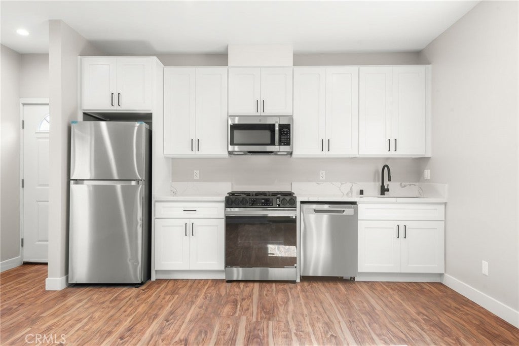 SECTION 8 AND HOUSING VOUCHERS WELCOME! Experience modern urban living at 145 E 36th Pl in this a NEWLY CONSTRUCTED residence featuring a bright open layout, stylish white-shaker kitchen with quartz counters and stainless-steel appliances, warm wood-style floors, and a striking black spiral staircase. Enjoy private outdoor space with brick-paver patio and secure fencing, all within minutes of Downtown LA, USC, and major freeways. This ADU is walking distance to Superior Grocers with convenient access to Metro bus lines and the 110 Freeway.