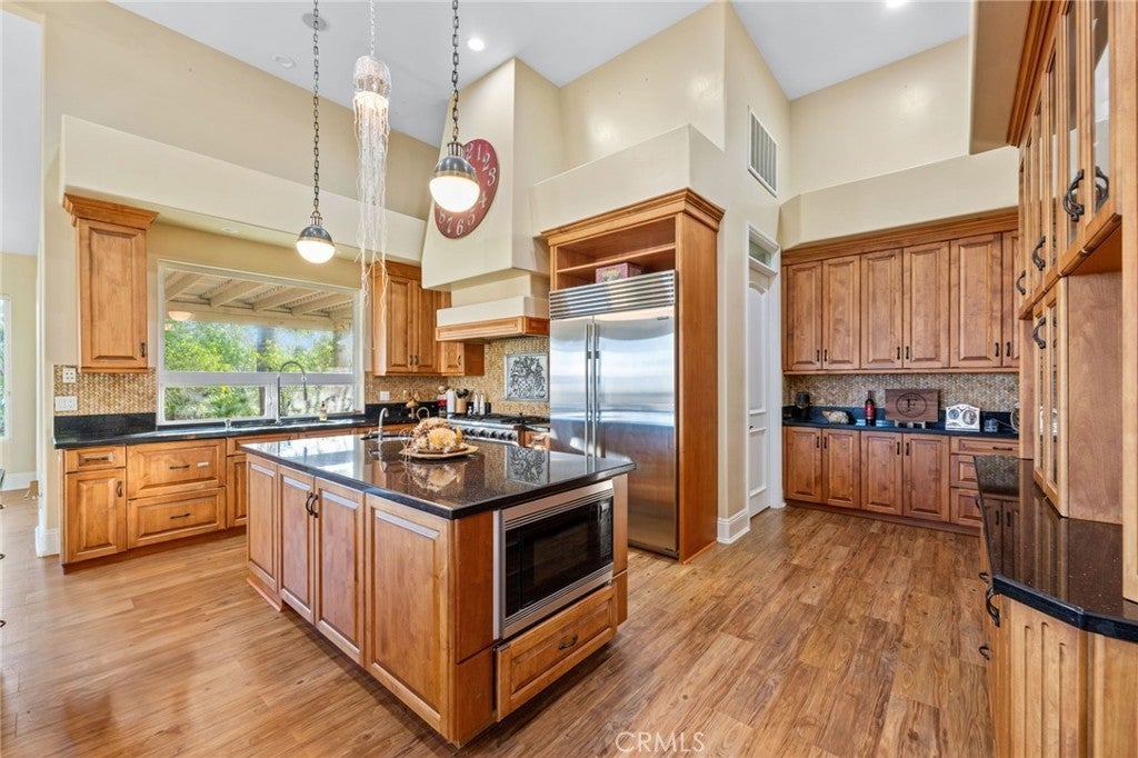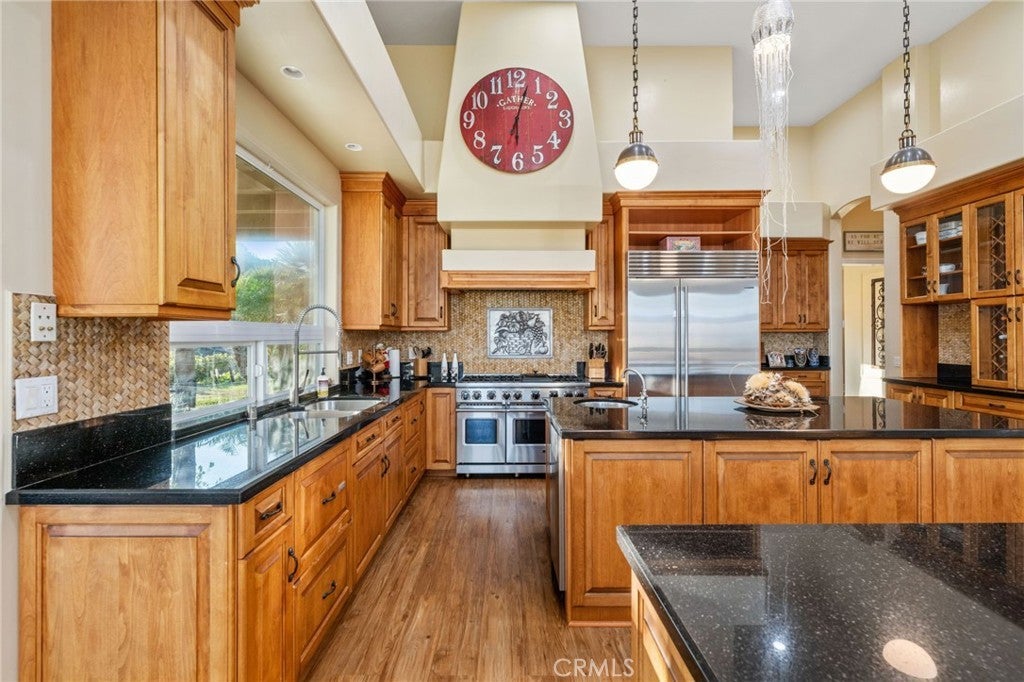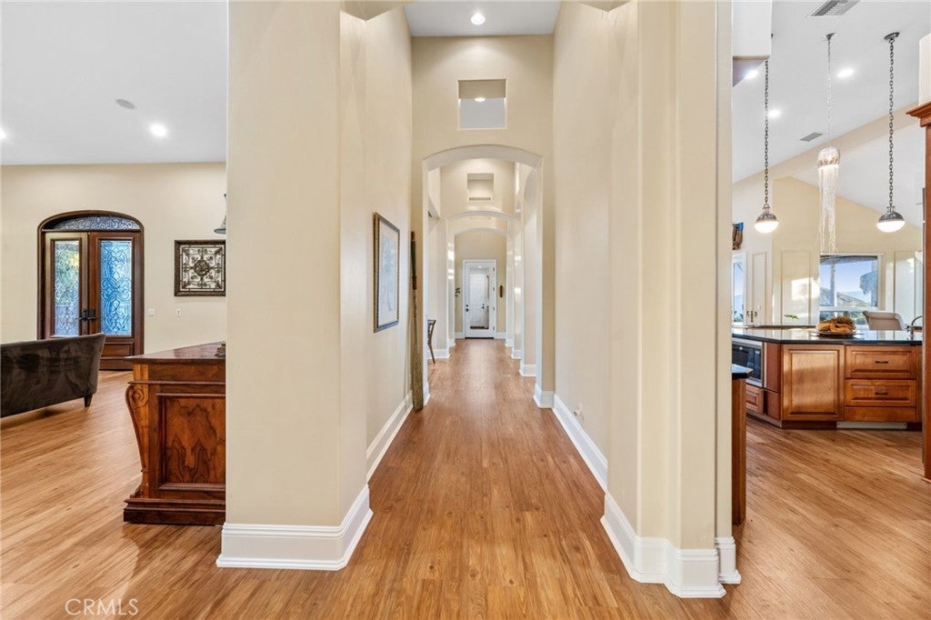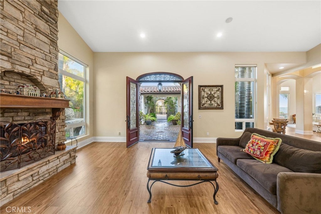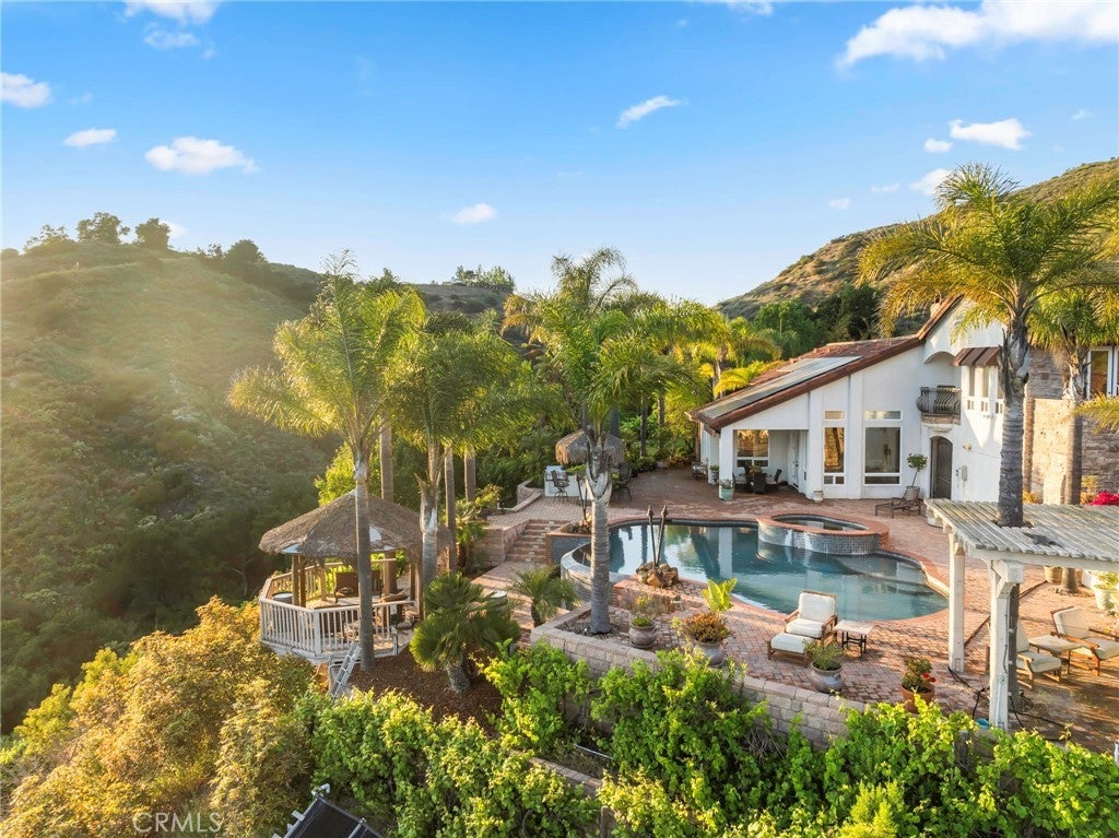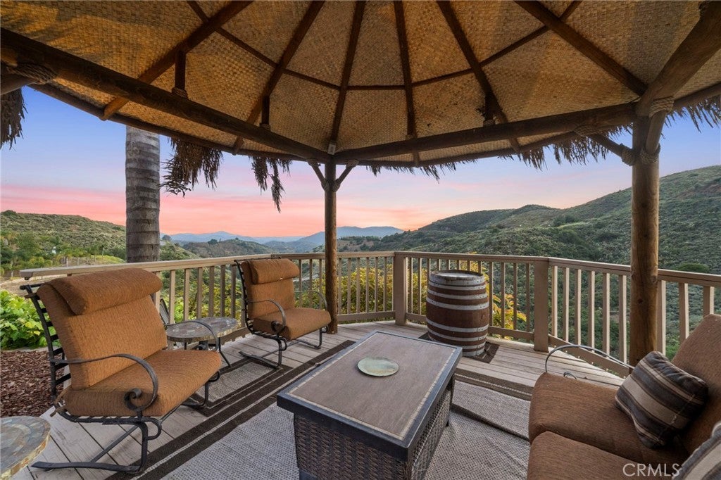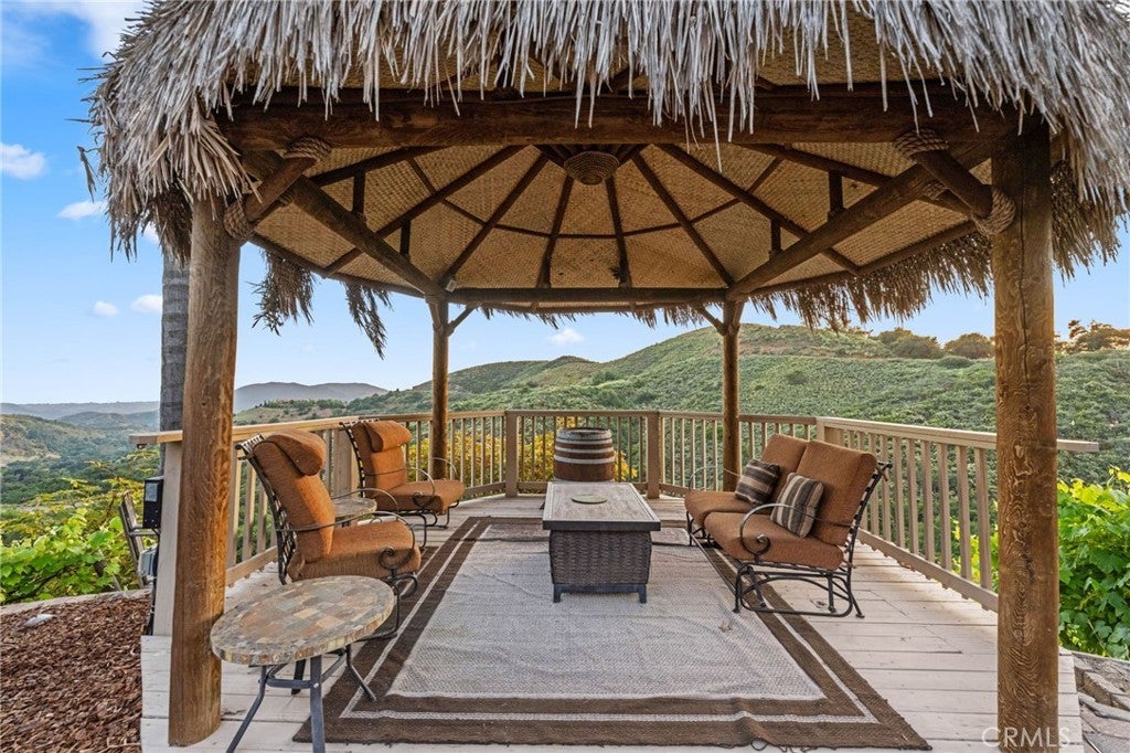 Welcome to 44915 Palladian in the beautiful De Luz community in the hills above Old Town Temecula, tucked away in one of the most premiere privately gated communities in the Temecula Valley, Renaissance Estates. This luxury estate property on almost five acres is thoughtfully laid out with over 4400 square feet of living space, arriving through your very own private electric gate entrance. Beautiful gourmet kitchen with an abundance of wood cabinets and a six-burner Viking stove, Sub Zero refrigerator, and a large walk-in pantry. The main house features a huge master suite with a spacious master bath, including your own two-person jetted tub and a two-sided fireplace. The main house guest bedroom has a walk-in closet, private bath, and its own private patio. The separate casita tucked away close by is perfect for guests, visiting grown children or family, or teenagers wanting their own space. It has its own private living area with fireplace and private bath. There is a second separate guest quarters outside the main house with two balconies and a private bath, the only part of the estate on the second level with views abound. The backyard has a private infinity edge pool, raised spa, forever views all the way to the ocean, outdoor fireplace, palapa BBQ island, and lots of sitting areas. Tropical landscaping all around with many fruit trees. Beautifully finished four-car garage. There is a one-car separate garage attached to the main house that could easily be transformed into additional living space. PAID FOR SOLAR too! You just have to see this one to really feel how truly amazing it is. Come see the new oasis waiting for you.