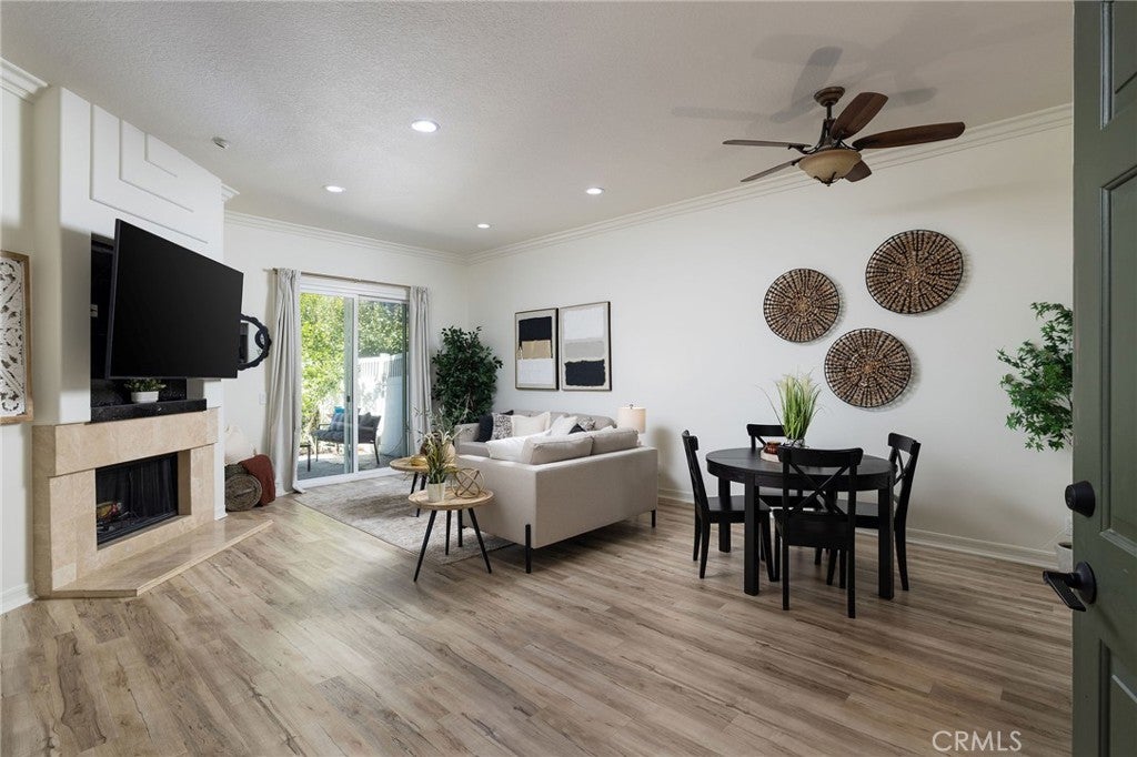 LOCATION..LOCATION..LOCATION..CRESTLINE at its finest! This beautiful community boasts of being in the countryside with mature trees and well-maintained landscape. This Turn-Key Open Concept Two Bedroom, 2 Bath Home with an Oversized Backyard has it all. A home with an abundance of natural light, infused with well-appointed upgrades and designer details features designer paint, wood laminate floors, new baseboards, recessed lighting. granite tile counters, stainless steel appliances, new windows, mirrored wardrobe doors, and new paint throughout! The low maintenance oversized backyard claims an enchanting patio, and lovely area to grill and entertain allowing you and your guests to relax and enjoy. Offered, 1 covered carport is conveniently located right outside the front door (1st space) and 1 unassigned parking space (uncovered).The HOA fees cover trash, sewer, access to 3 community pools, 3 spas, and a meeting room. Do not miss this unique opportunity to embrace the lifestyle in one of OC's premier neighborhoods close to freeways, restaurants, shopping, and tons of entertainment!