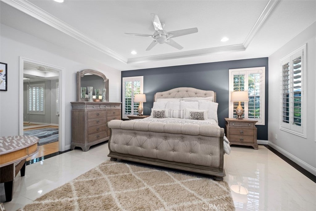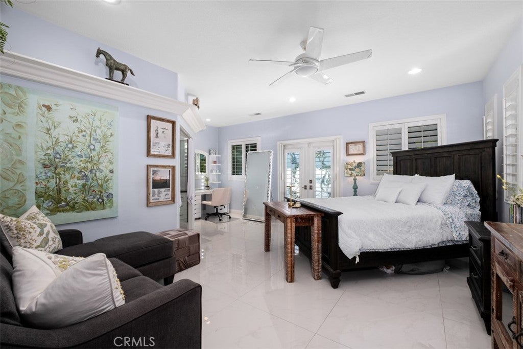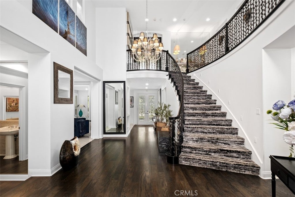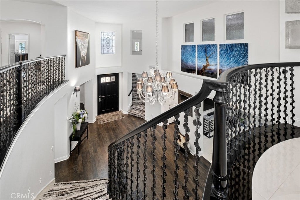Welcome to this private Cape Cod-inspired estate in guard-gated Coto de Caza, offering panoramic east-facing views and sophisticated entertaining. Nestled at the end of a cul-de-sac, this home boasts the largest floor plan in the Southern Hills Encore Tract and a truly exceptional living experience. An expansive driveway and garage provide parking for up to eight vehicles. Inside, the soaring entry reveals sweeping wrought-iron stairs and a living room with one of three fireplaces. Four sets of French doors create a seamless transition to the backyard oasis, complete with a PebbleTec pool and spa, built-in BBQ with gas line, fire pit, and a waterfall. The outdoor space includes an outdoor shower, lighting, and surround sound that extends throughout home’s main level. Four balconies provide private vantage points for the views. Throughout the home, hardwood floors, contemporary lighting, and wood shutters add functional elegance. The gourmet kitchen is open to the family room and equipped with professional-grade WOLF/SubZero appliances, dramatic slab countertops, and abundant storage including a walk-in pantry. A formal dining room is complemented by casual eat-in space and a breakfast bar. With 5 bedrooms and 5.5 baths, including a main-level in-law suite, everyone enjoys comfort and privacy. The primary suite is a true retreat, featuring a fireplace, private balcony, and a walk-in closet with custom built-ins and attic access for additional storage. An adjoining room offers flexible space for a private gym, office, or expanded closet. The spa-like primary bath includes an oversized jacuzzi tub and a walk-in shower. The upper landing provides another versatile space for a den or office. Key upgrades include recessed lighting, Casablanca fans, dual air conditioning units, a whole house fan, and a water purification system. The property also features a large, paved side yard with a storage unit matched to the home. This property offers a complete lifestyle with access to Coto de Caza's community amenities, including horse trails, a clubhouse, and sports facilities. The renowned Coto de Caza Golf & Racquet Club, with two championship courses designed by Robert Trent Jones Jr., is also nearby, and all is located within minutes of diverse shopping and dining options. This is Coto de Caza living at its best. --