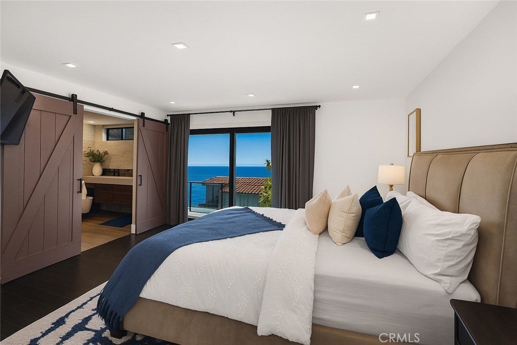 Welcome to 2870 Zell Drive, a beautifully detailed coastal retreat in Laguna Beach’s highly desired Top of the World neighborhood. Positioned to capture ocean, Catalina, and sunset views, this home offers the perfect blend of relaxed comfort and timeless charm. The main level features an open-concept layout with chevron-patterned hardwood floors, a statement fireplace, and a floor-to-ceiling glass-enclosed wine display. The chef’s kitchen includes Thermador stainless-steel appliances, a built-in refrigerator, walk-in pantry, and a center island, all opening to the dinning and family room plus a spacious front patio ideal for indoor-outdoor entertaining. Upstairs, the primary suite showcases ocean and sunset views, a private balcony, and a spa-inspired bath with a free-standing soaking tub and designer finishes. Two additional bedrooms and a full bath complete the second level, along with an expansive ocean-view deck featuring a built-in wet bar and generous lounge space for outdoor dining and enjoying coastal sunsets. Located minutes from Laguna’s award-winning schools, hiking trails, and world-class beaches, this residence captures the essence of modern coastal living in one of the area’s most sought-after enclaves.