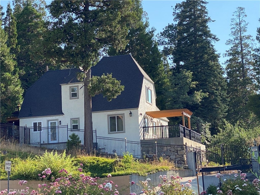 Perfectly positioned across from Lake Arrowhead Village and the lake itself, 27981 Lakes Edge Road offers an exceptional blend of old-world character and contemporary luxury. This stately Tudor-style home stands proudly along Hwy 189/Lakes Edge Road, within the prestigious Arrowhead Woods community—with full lake rights and breathtaking views of the lake and village. Recently renovated, the residence features a brand-new kitchen complete with built-in stainless steel refrigerator, gas range, microwave, wine refrigerator, and a custom coffee station. New luxury vinyl wood flooring, fresh interior paint, remodeled bathrooms, and a new roof provide peace of mind and modern appeal. The home offers 4 bedrooms, 4.5 bathrooms, consisting of two inviting master suites, a cozy loft, and a charming ADU—ideal for guests or additional income. Enjoy the warmth of the stone fireplace or step onto the spacious balcony to sip your morning coffee while overlooking the serene lake setting. Thoughtfully designed for convenience, the property offers dual access points, private security gating, and rare parking for 6–8 vehicles. Central air conditioning ensures year-round comfort, while the tranquil mountain surroundings make this an ideal retreat from city life.Located just steps from the newly renovated Lake Arrowhead Resort and Spa—Southern California’s first member of Marriott’s Autograph Collection—you’ll have immediate access to fine dining, boutique shopping, and year-round outdoor adventures from boating and fishing to hiking and skiing. Whether as a full-time residence or mountain getaway, this home offers a warm, inviting escape where timeless architecture meets modern mountain living.