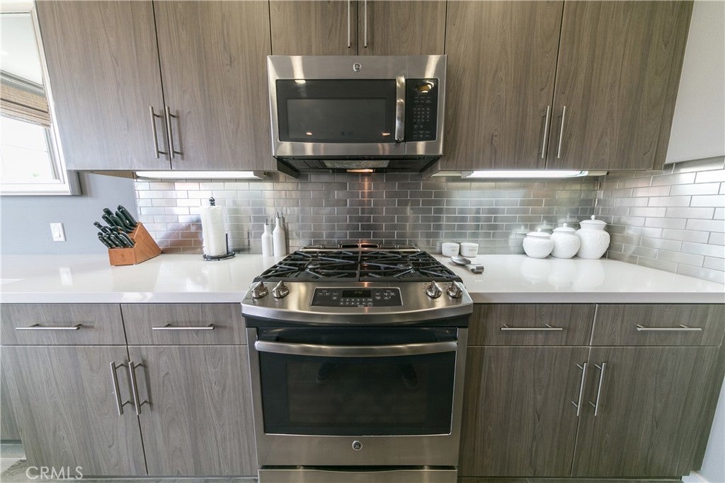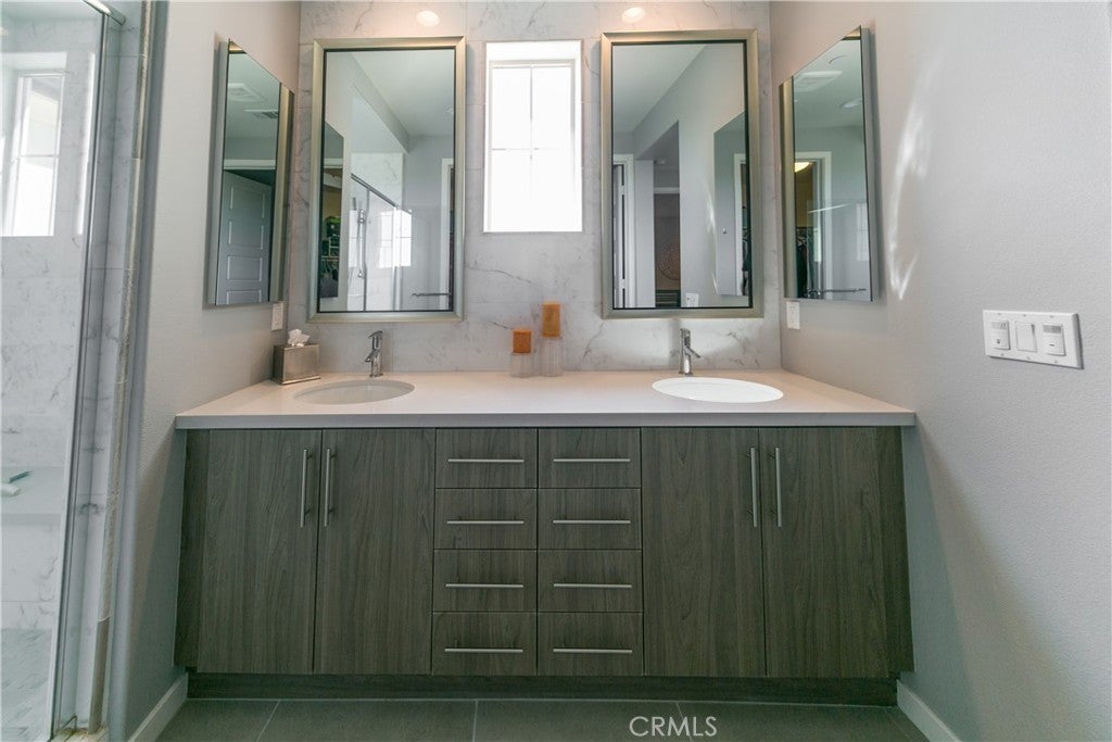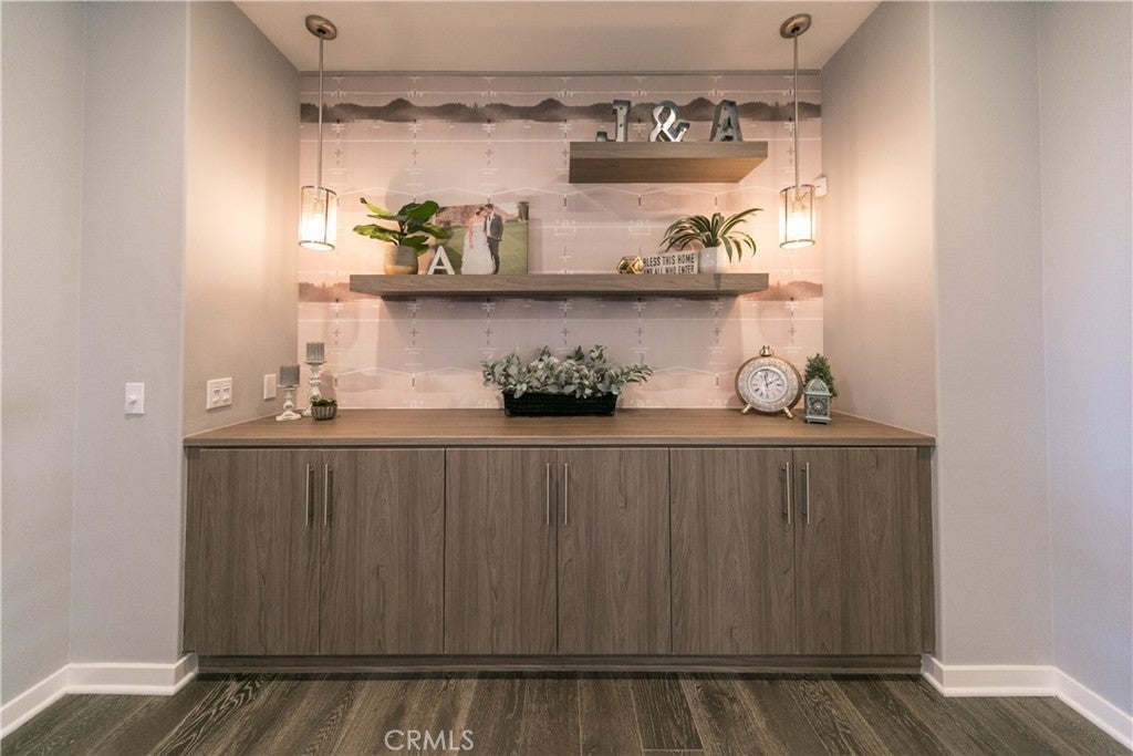Welcome to this gorgeous, upgraded former Model Home nestled in the prestigious community of Baker Ranch, where every detail whispers elegance and comfort. From the moment you step inside, you’re greeted by soaring ceilings, sunlit picture windows, and a seamless open floor plan that invites you to unwind and feel at home. The private back patio overlooks the tranquil community park — the perfect backdrop for morning coffee or sunset gatherings. Every inch of this residence has been thoughtfully curated — from the custom tile floors that glisten under recessed lighting to the rich wood floors upstairs that radiate warmth and sophistication. Surround sound speakers, designer fixtures, and tailored window treatments add an effortless sense of luxury throughout. The dream kitchen is the heart of the home — a modern masterpiece featuring sleek flat-panel cabinetry, Quartz countertops, a stunning gloss-finish tile backsplash, and GE stainless steel appliances. With its walk-in pantry, under-cabinet lighting, and expansive island, it’s both a chef’s delight and an entertainer’s dream. As you ascend the open, stain-grade staircase, admire the built-in cabinetry and floating shelves accented by modern lighting — a beautiful blend of function and art. Down the hallway, your primary suite awaits — a serene sanctuary wrapped in designer wallpaper and illuminated by an elegant chandelier. Here, you can unwind and rejuvenate in peaceful privacy. The spa-inspired master bath offers dual vanities with designer mirrors, a spacious walk-in shower with seating, and a luxurious tile surround — every element designed to soothe the senses. Even the laundry room has been elevated with thoughtful upgrades, making everyday tasks feel effortless. Beyond your doorstep lies the best of Baker Ranch living — with six sparkling pools, eleven lush parks, sports courts, a resort-style clubhouse, scenic walking and hiking trails, playgrounds, a dog park, and more.nThis isn’t just a home — it’s a lifestyle, offering modern elegance, comfort, and connection in one of Orange County’s most beloved communities.