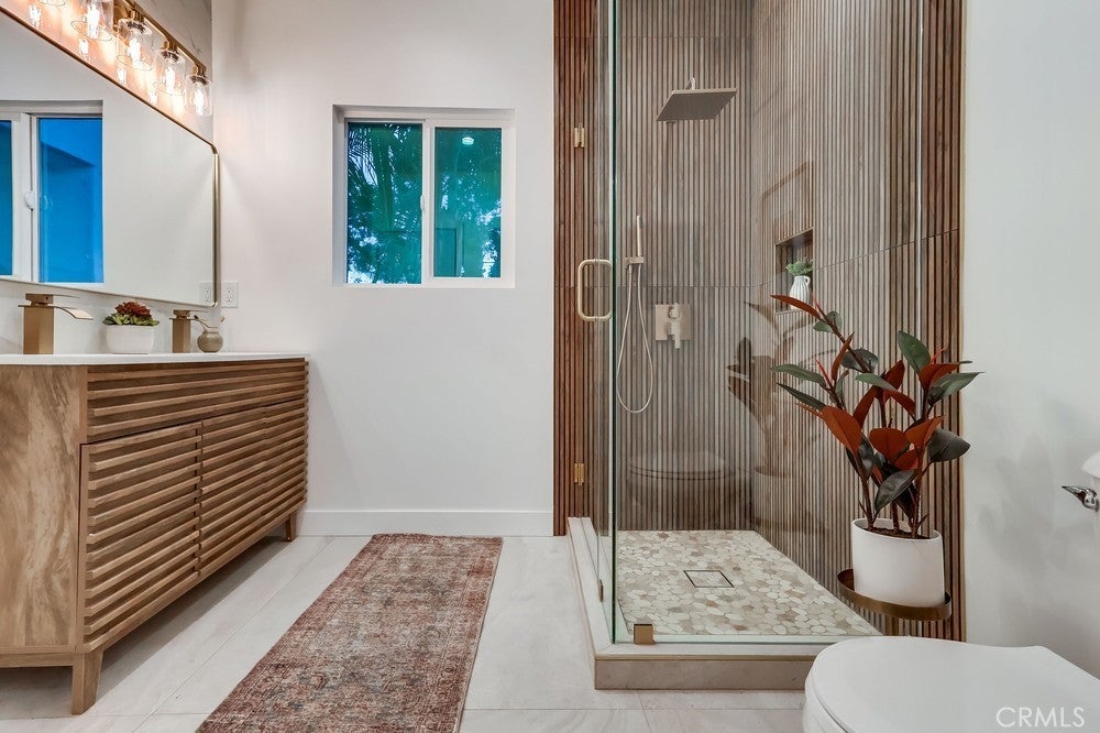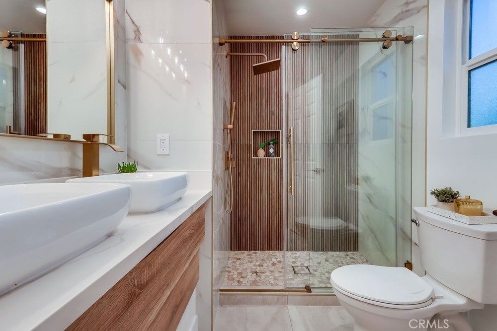 Expansive Luxury in Leimert Park | 4 Bed 4 Bath 2700 Sqft Main House | 500 Sqft Back House (ADU-ready) | Fully Renovated with Plans and Permits | This showcase compound blends thoughtful design with modern functionality throughout its stunning Spanish-style main home and permitted rear bonus unit. The lower level offers a sunlit living room with 10-foot ceilings, designer kitchen with quartz counters and custom cabinetry, formal dining room, sparkling powder room, and spacious en-suite bedroom with walk-in closet. Upstairs you will find a striking hallway bathroom, two guest bedrooms, and the spacious primary suite. Every system and surface has been upgraded, including new electrical, plumbing, HVAC, and windows. Outside, landscaped grounds frame the 2-car garage and detached 500 sqft back house - perfect for an entertainment studio, office space, home gym, or easy ADU conversion with the addition of a shower and kitchenette. Spacious, turn-key, and nestled north of MLK Blvd in the heart of Leimert Park, 4016 6th Ave eagerly awaits its proud new owner.