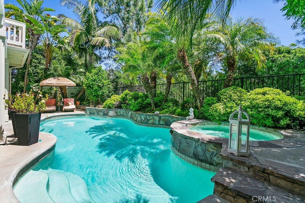 Welcome to Your Private Oasis Retreat in Aliso Viejo. Tucked away at the end of a peaceful cul-de-sac in the highly desirable Hillsborough community, this beautifully maintained pool home offers the ideal blend of comfort, elegance, and practicality. Step inside to discover a flexible floor plan featuring a kitchen that opens seamlessly to a spacious family room with a cozy gas fireplace and picturesque views of the resort-style saltwater pool and spa. The main level also includes a formal living and dining room with soaring ceilings, plus a generously sized den—easily convertible into a fifth bedroom to suit your needs. Upstairs, you'll find 3 bedrooms and a spacious loft which can be easily converted into a 4th bedroom. The primary suite features French doors leading to a large private view deck, along with an en-suite bath offering dual vanities, a soaking tub, separate shower, and a spacious walk-in closet. The backyard is designed for entertaining, complete with raised garden planters, a hardscaped patio, and plenty of space for poolside lounging and gatherings. Additional highlights include crown molding, upgraded baseboards, a dedicated laundry room, and an epoxy-coated 2 car garage, and built-in storage. Residents of Hillsborough enjoy a welcoming, family-friendly atmosphere with easy access to award-winning schools, scenic parks, shopping, dining, and miles of hiking and biking trails. All just minutes from the toll road and Soka University and much more… Don’t miss the chance to make this beautiful home your own!