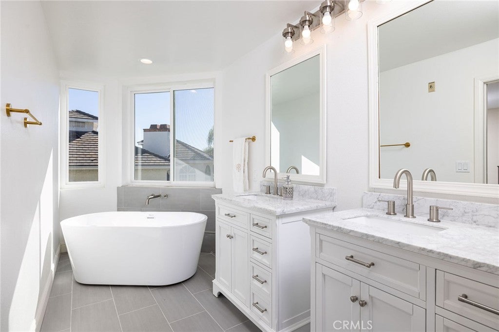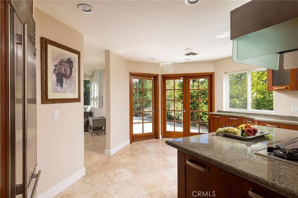 Newly-remodeled, Nellie Gail Ranch view home with private outdoor living. Enjoy sweeping mountain vistas from this three-level residence with rooftop deck, set on roughly 1/4 acre of flat, usable land. A generous driveway leads to a large 3-car garage and manicured landscaping, making for a welcoming curb appeal. Inside, double entry doors open to grand interior proportions with vaulted ceilings and abundant natural light. The living room has dramatic two-story ceilings and a gas fireplace, and the dining area connects to the inviting patio through double French doors. The chef’s kitchen is equipped with Thermador double ovens, a SubZero refrigerator, granite countertops, island, and pantry storage. The generous family room features a second gas fireplace, large windows, and direct access to the backyard, continuing the home's indoor-outdoor design. Fresh paint, travertine flooring, convenient powder room, downstairs office, and designated laundry room with sliding barn door complete the main floor. With six total bedrooms and four full baths, the upgraded home comfortably accommodates family and guests. On the top level, you will find the expansive and private primary suite surrounded by spectacular views and has private access to a large balcony. The primary bath has a chic soaking tub, double vanity, shower, and a spacious walk-in closet with natural light. The private pool-size backyard includes a patio and lawn surrounded by lush, mature landscaping with Italian cypress and palm trees. Exterior stairs provide direct access to the upper floors, and the rooftop deck delivers sweeping views of the Santa Ana Mountains and across south Orange County. Nellie Gail Ranch provides exceptional value with low monthly HOA fees that cover security, trail maintenance, and baseline membership to the swim, tennis, and pickleball club. Community amenities include a clubhouse, restaurant, swimming facilities, 25 miles of trails, parks, and regular events. The location offers convenient access to freeways, shopping, and beaches, all within one of the region's premier equestrian neighborhoods. A rare opportunity with exceptional space and views.