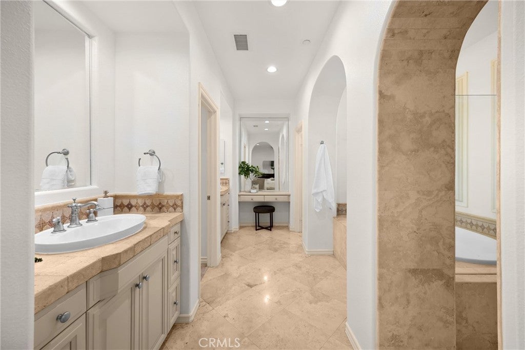 This Mediterranean-style residence in The Summit at Turtle Ridge, offers 4 bedrooms and 4.5 bathrooms across approximately 3,450 square feet of refined living space on a 6,500 square foot cul-de-sac lot. The home is surrounded by a 34-foot privacy hedge and mature Italian cypress trees, creating a tranquil and secluded setting. Inside, warm walnut floors and stone-tiled baths complement an open chef’s kitchen with granite counters, stainless steel appliances, double ovens, and a six-burner cooktop. A downstairs bedroom suite, powder room, and laundry room with sink provide both comfort and convenience. The backyard is designed for entertaining and relaxation, featuring low-maintenance turf, a fire pit, built-in barbecue, and gazebo. A private front atrium with fountain adds Mediterranean charm and connects indoor and outdoor living spaces seamlessly. Located within the guard-gated community of Turtle Ridge, residents enjoy resort-style amenities including an Olympic-size pool, hot tubs, cabanas, two clubhouses (one with a theater), fitness center, playgrounds, barbecue areas, and scenic trails through Bommer Canyon. Just minutes from the 73 Toll Road, UCI, Fashion Island, and John Wayne Airport, the home combines privacy, luxury, and accessibility. Served by top-rated Irvine Unified schools including Vista Verde K–8, Rancho San Joaquin Middle, and University High, it offers an exceptional lifestyle in one of Irvine’s most desirable communities.