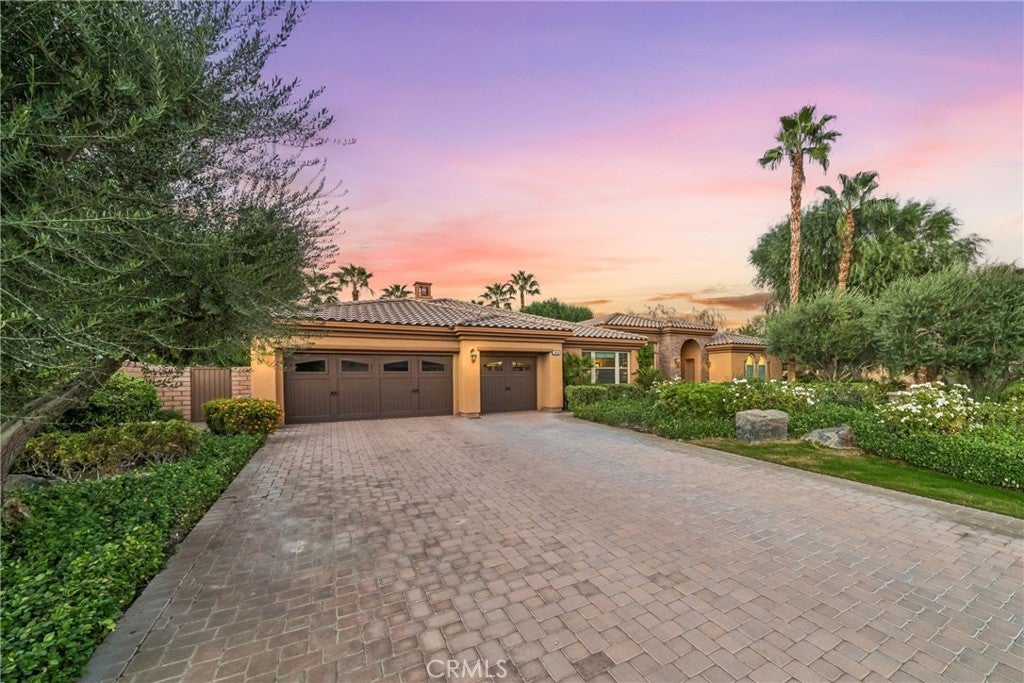 Welcome to this magnificent desert estate, a residence where luxury, comfort, and style converge into a singular experience. This gorgeous 4 bedroom, 4.5 bath home, encompassing 3,240 square feet, is situated on a premium 14,375 square-foot corner lot, providing unparalleled space and privacy. Upon arrival, be captivated by the elegant paver-lined driveway and meticulously landscaped front yard. The home’s interior reveals a sprawling open floor plan, distinguished by travertine and wood flooring, soaring ceilings with crown molding, and recessed lighting that illuminates the main living areas. The combined formal living and dining rooms offer an ideal setting for sophisticated entertaining, while the inviting TV room provides a cozy retreat with its built-in entertainment center, bookshelves, surround sound, and a charming fireplace. The heart of the home is the gourmet kitchen, a culinary masterpiece designed to impress. It features granite slab countertops, stainless steel appliances, a gas cooktop, and a spacious island with a breakfast bar. The luxurious master suite is a true sanctuary, boasting a separate seating area, his-and-hers walk-in closets, and a spa-like bathroom complete with double vanities, a deep soaking tub, a custom tiled shower and a stunning custom painted wall mural. Step outside into a private, resort-style backyard retreat, where luxury and comfort are harmoniously blended. A spacious, pergola-covered patio features a built-in fireplace, a fully equipped outdoor kitchen with a BBQ, and multiple seating areas perfect for gatherings. The centerpiece is a sparkling pool with an elevated spa, cascading water features, and a dramatic stone backdrop framed by swaying palms and lush landscaping. This exceptional home also includes a 3-car garage with a mini-split AC system for ultimate comfort and storage, alongside two brand-new Lennox AC units that ensure energy efficiency and year-round climate control. This unparalleled residence is located within the prestigious, gated enclave of Stone Gate, one of Bermuda Dunes’ most sought-after neighborhoods. The community offers a perfect blend of seclusion and convenience, placing you just minutes from world-class golf courses, fine dining, shopping, and entertainment. This is more than a home; it is a testament to luxurious desert living.