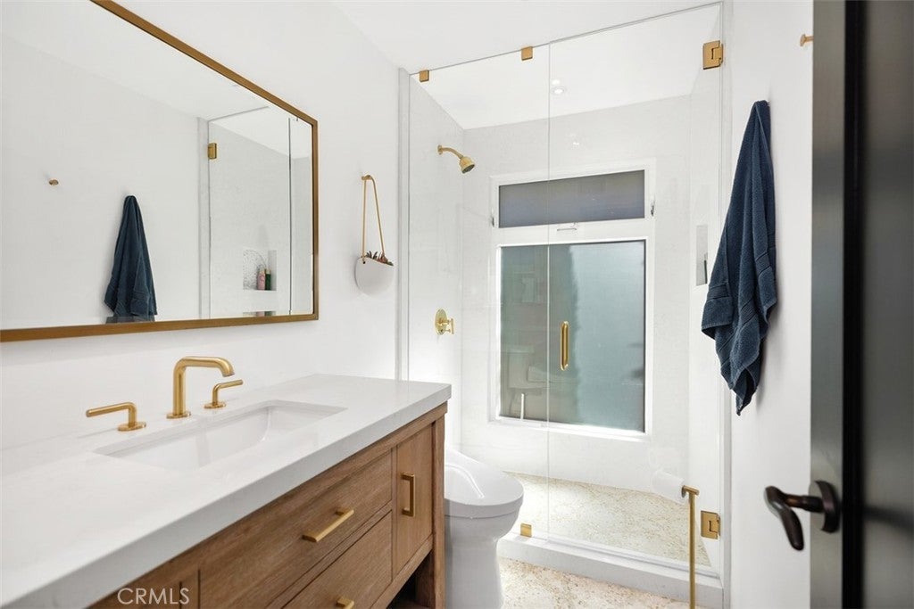 Experience timeless style and modern comfort in this beautifully remodeled residence, thoughtfully curated with luxury materials and exceptional craftsmanship. Hardwood and marble flooring flow throughout, with French white oak in the kitchen, American white oak in the office and owner’s suite, and natural travertine in the living and entry areas. The fully renovated kitchen features custom cabinetry, quartz countertops, a RO water filtration system, Sub-Zero refrigerator, Thermador range and dishwasher, and a sleek undermount sink. Both bathrooms showcase exquisite finishes, the owner’s bath with slate porcelain flooring and an Emperador marble shower enclosure, and the guest bath with Italian mosaic Carrara marble flooring and a quartz slab shower surround. Upgrades include a Culligan whole-house water treatment system, PEX plumbing, newer windows and French doors, solid brass door hardware and air vent covers, custom lighting, and designer fixtures throughout. Exterior enhancements feature a redesigned entry courtyard with concrete walkways, built-in planters, a privacy wall with security gate, and a backyard patio extension framed by a full-length privacy wall with ¾" glass—perfect for enjoying amazing sunset views. Italian cypress and lush perennial plantings add natural beauty and year-round color. Located in the desirable Rancho Niguel community with access to The Club at Rancho Niguel, offering tennis courts, pickleball courts, swimming pools, a gym, racquetball courts, clubhouse, and more. This exceptional home offers a rare blend of artisan detail, refined upgrades, and enduring quality, perfect for those seeking elevated coastal-close living.