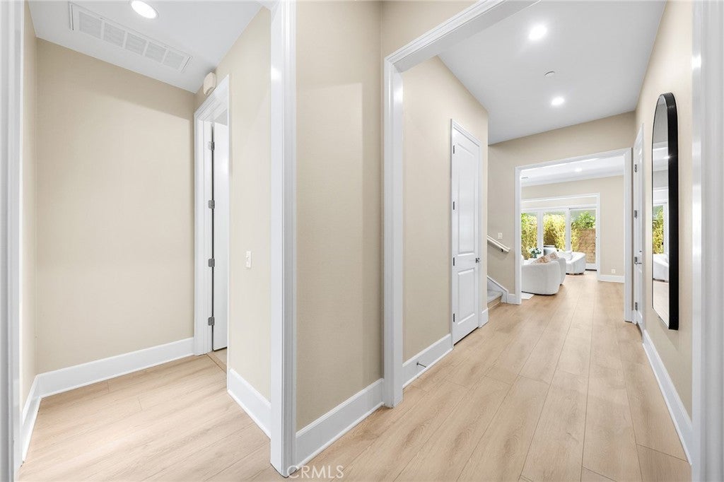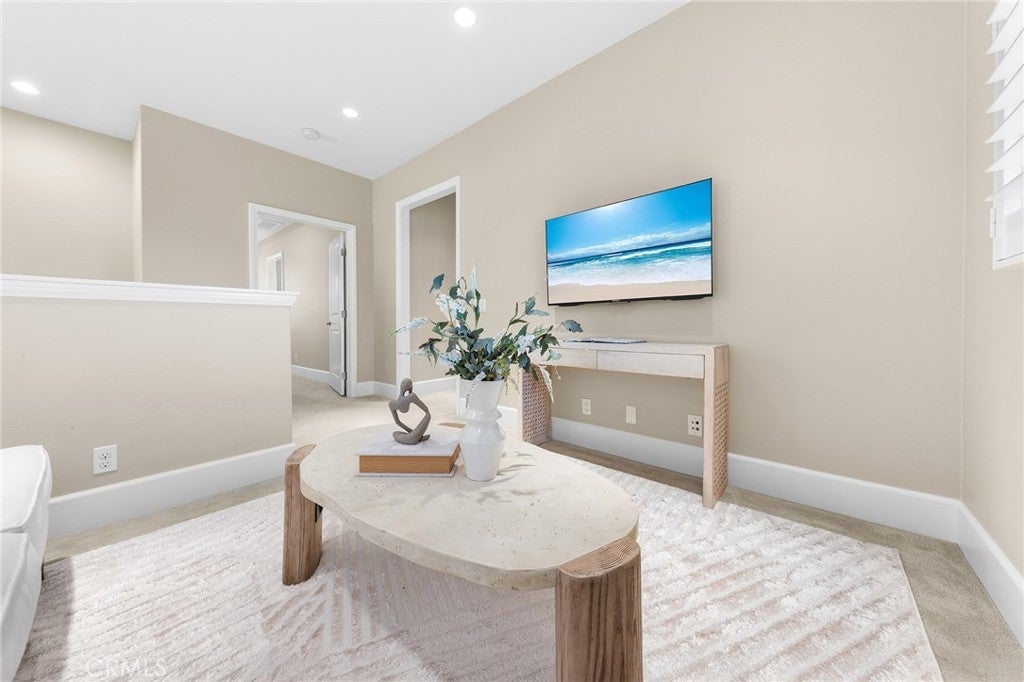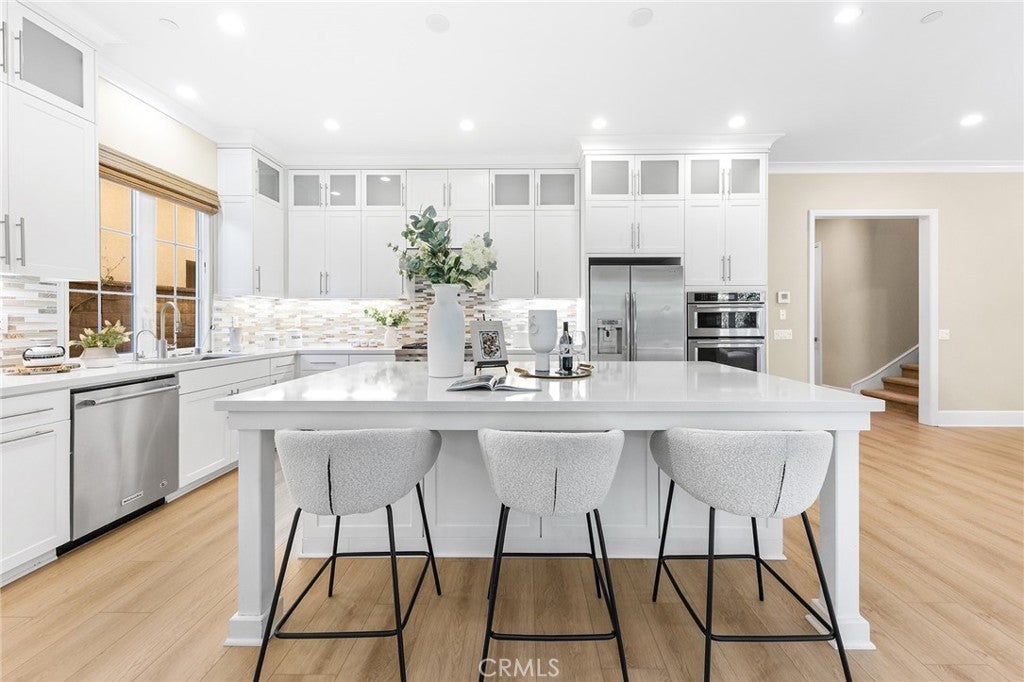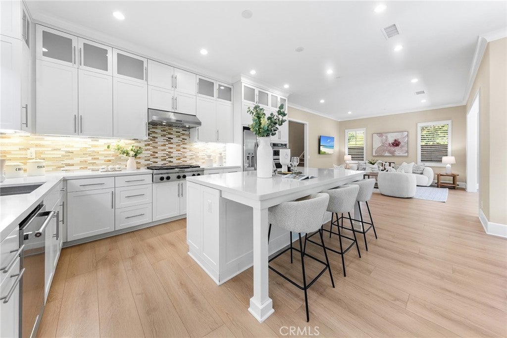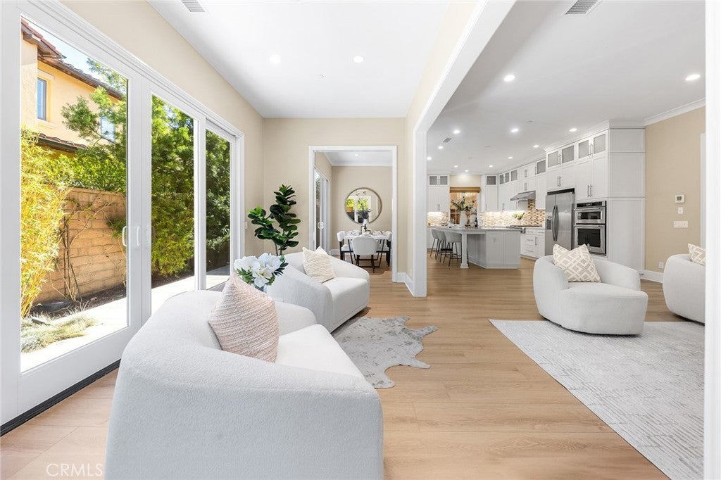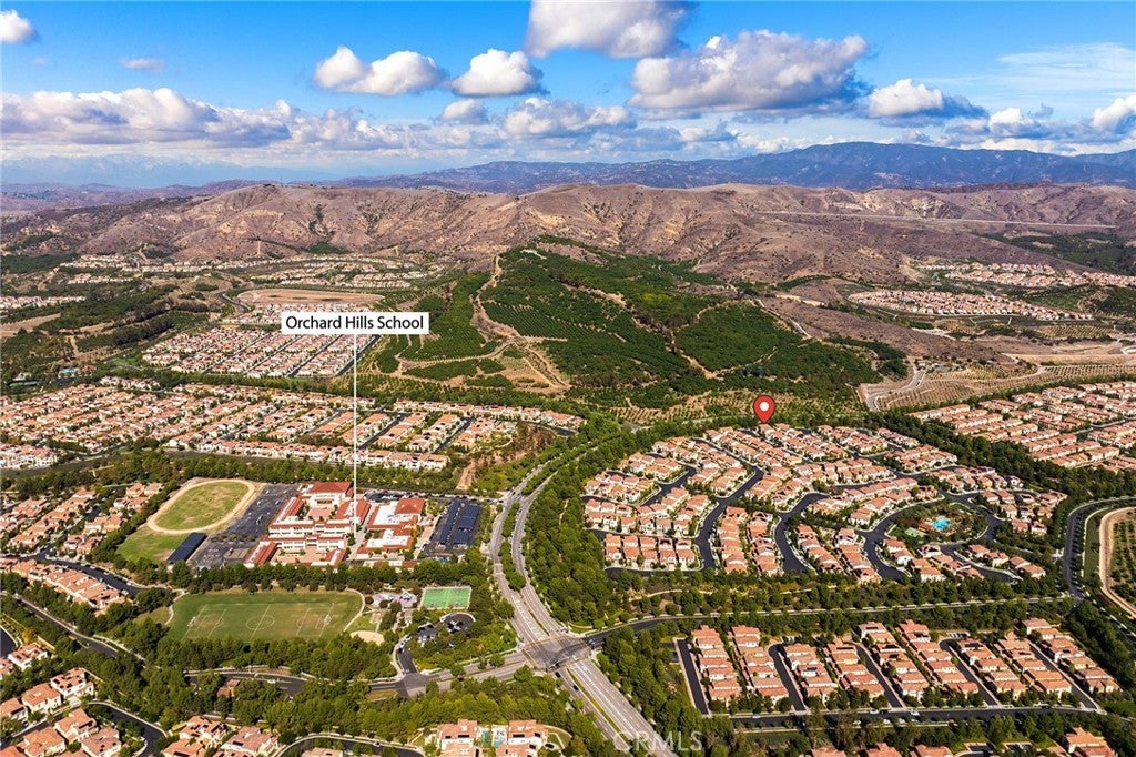 Welcome to 51 Thoroughbred, a stunning newer-construction end-unit home located on a private cul-de-sac in the desirable Strada community of Orchard Hills. This residence boasts soaring cathedral ceilings and an open floor plan, creating a bright and inviting living space. Expansive glass doors and windows open to a beautifully landscaped backyard featuring travertine flooring, a water feature, and a built-in BBQ island with seating—perfect for outdoor entertaining. The interior has been upgraded with brand-new flooring throughout, complementing the gourmet kitchen with custom tile backsplash, a large center island with seating, KitchenAid appliances, ceiling-height cabinetry, and a walk-in pantry. A convenient downstairs bedroom and full bath are ideal for guests or multi-generational living. Upstairs, a versatile loft offers space for a playroom, office, or media room. The serene primary suite includes a customized walk-in closet and spa-inspired bath with dual vanities, a soaking tub, and a separate shower. Two additional bedrooms, a full bath with double sinks, and a spacious laundry room complete the upper level. Additional highlights include a reverse-osmosis water filtration system, whole-house water softener, plantation shutters, automatic outdoor lighting and irrigation, and a garage with epoxy flooring and extensive built-in cabinetry. Residents of Orchard Hills enjoy resort-style amenities including pools, spas, BBQ areas, basketball courts, and playgrounds. Conveniently located near major freeways, toll roads, premier shopping and dining, and within the award-winning Irvine Unified School District including Northwood High School.