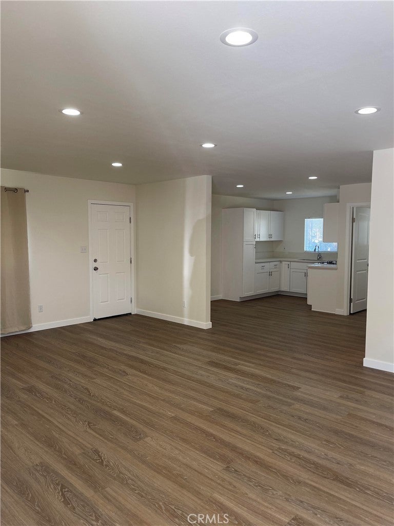 Detached single family residence on a large lot. The home is spacious with recessed lighting and vinyl plank floors. It has everything you need to make it yours. There is a large private backyard. It features 3 bedrooms, 2 bathrooms, storage space in the hallway and a separate laundry room with washer & dryer hook ups inside the house. Additional features include large closets, an eating area in kitchen and a lime tree in the front yard. The updated kitchen has a pantry, large single bowl sink, plenty of cabinet space and quartz countertops. The home has a shared driveway with the house in front. The driveway is long and provides access to both houses. There are two designated parking spaces on the driveway in front of the house. This home does not have a garage. However, it does have a large storage shed.