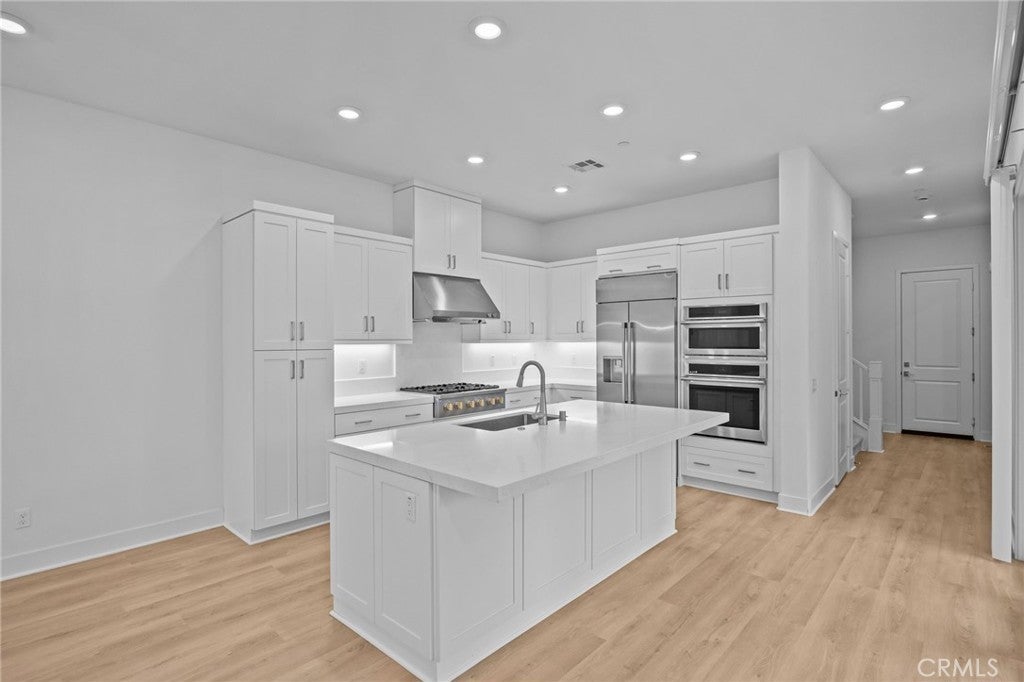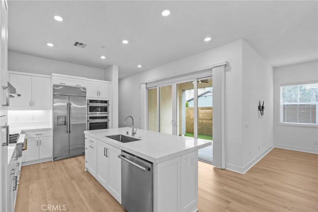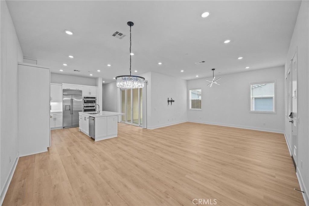 Modern two-story 4 bedrooms (including one downstairs), 4 baths, loft, and balcony. Upgraded living space with luxury vinyl plank flooring, LED lighting, shaker cabinetry, solar panels, and attached 2-car garage. Gourmet kitchen with quartz counters, full backsplash, island, and stainless-steel appliances including a built-in refrigerator. Private side yard with turf and front patio. Enjoy world-class Great Park amenities like multiple parks, pools, tennis courts, BBQ areas, and clubhouse access. Located in top-rated Irvine USD (Portola HS & Solis K-8) and minutes to shopping, dining, Irvine Spectrum, and major freeways.