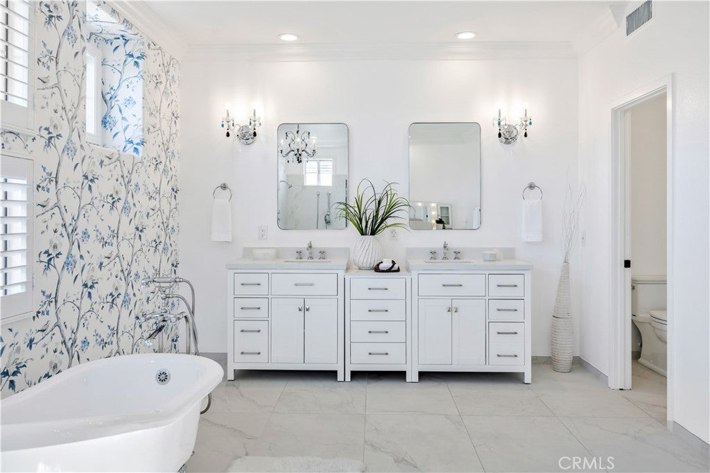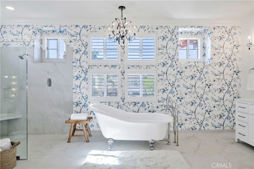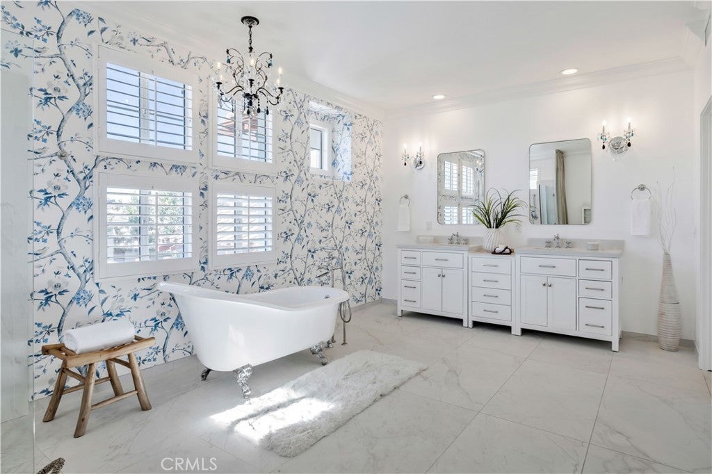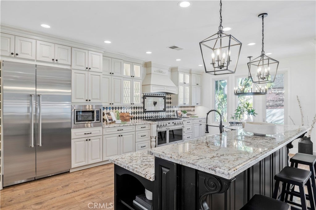 Nestled on a quiet cul-de-sac street within the prestigious GUARD-GATED COMMUNITY of Canyon Crest with NO MELLO-ROOS and LOW HOA, this stunning remodeled home perfectly blends luxury, efficiency, and comfort. This remodeled home residence showcases thoughtful design and superior craftsmanship throughout featuring a FULLY PAID SOLAR SYSTEM WITH BATTERY BACKUP, a spacious epoxy coated THREE-CAR TANDEM GARAGE with EV CHARGER outlet, MyQ wi-fi garage door openers with built in cameras and battery backup, and a large driveway that accommodates up to four cars. Step inside to a grand living and dining area with soaring ceilings, designer finishes, and abundant natural light that highlight the home’s refined style. The gourmet chef’s kitchen is a true showpiece, featuring an 8-burner Thor built-in range with dual ovens, a large built-in refrigerator/freezer, high-end stainless steel appliances, and a large walk-in pantry. The breakfast nook opens seamlessly to the inviting family room with a beautiful stone fireplace—perfect for everyday living and entertaining. Upstairs, the luxurious primary suite offers a private retreat with its own fireplace, a spacious sitting area, and a massive walk-in closet. The oversized spa-inspired primary bathroom features a freestanding soaking tub, a large walk-in shower, a separate makeup vanity and stunning designer finishes. Three additional bedrooms complete the upper level, including one currently used as an office with built-ins that can easily be converted into a bedroom. Step outside to a beautifully landscaped backyard featuring a gorgeous pergola, outdoor fireplace, interlocking stone patio, fruit trees and plenty of privacy—ideal for gatherings or quiet relaxation. Additional highlights include a water softener, plantation shutters, crown molding, three fireplaces, and remodeled bathrooms. Residents enjoy access to world-class amenities including pools, tennis courts, a fitness center, clubhouse, playground, and Lake Mission Viejo privileges for boating, swimming, fireworks and summer concerts. This exceptional home offers the perfect combination of elegance, energy efficiency, and California living at its finest all nestled on a quiet cul-de-sac street in a guard gated community across from Lake Mission Viejo.