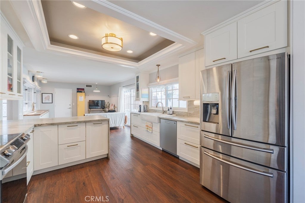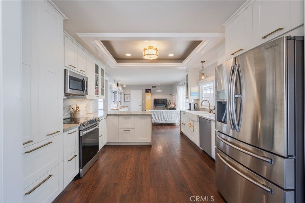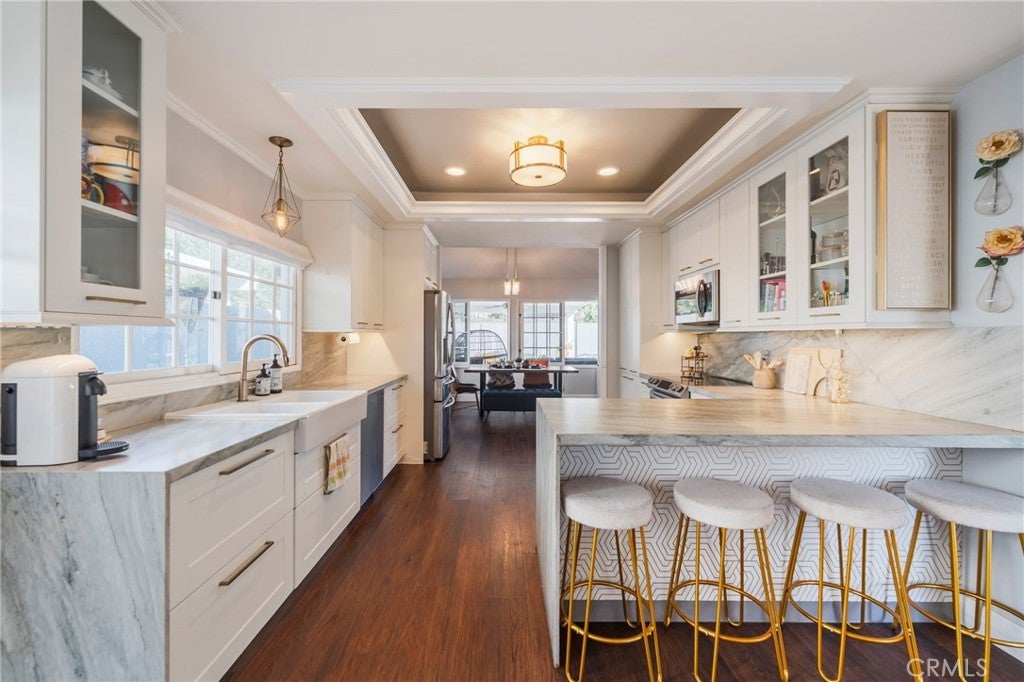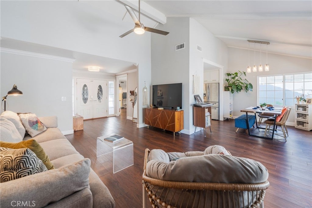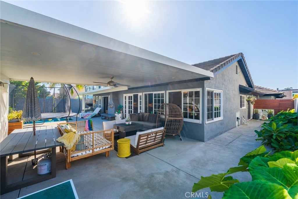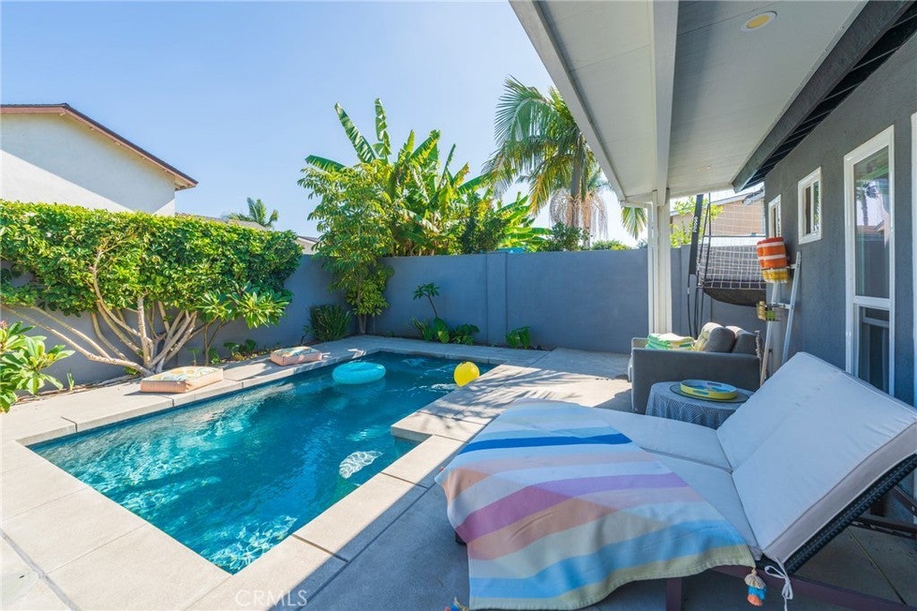 This beautifully remodeled La Cuesta Valencia model offers over 1,800 square feet of Single-Story Living—the largest and most sought-after floor plan in the community, and rarely available on the market! Enter through a large, welcoming Entryway into a bright and open layout featuring Volume Ceilings in the Living Room and Dining Room. The spacious Living Room includes a cozy Fireplace and French Doors leading to the backyard, while the Family Room off the Kitchen is perfect for casual gatherings. The Formal Dining Room, surrounded by French-Paned Windows, is filled with natural light. The Kitchen features Quartzite Counters, Newer Cabinetry with Under-Cabinet Lighting, Bar Seating, and Modern Laminate Flooring. The Primary Suite is a serene retreat with High Ceilings, additional French Doors opening to the backyard, a Walk-In Closet, and a remodeled Spa-Style Shower with four Shower heads. Three additional generous-sized Bedrooms provide comfort and flexibility for family, guests, or a Home Office. The Hall Bath has been beautifully updated with a Subway Tile Surround, Large Soaking Tub, and Custom Glass Enclosure. Step outside to a Resort-Style Entertainer’s Backyard featuring a sparkling Plunge Pool with jets that quickly becomes a spa for 15! Remodeled in 2019 with All-New Equipment, a Covered Patio with Multiple Seating Areas, and Lush Landscaping. There’s also a Large Side Yard—perfect for a Dog Run, Garden, or Extra Storage. Additional upgrades include Epoxy Flooring in Garage, Newer Pex piping throughout, a 200-Amp Electrical Panel, and New Gas Line for the Spa Heater and BBQ Area. The adorable Front Porch with Porch Swings offers the perfect place to relax and watch the sunset. Located in one of Huntington Beach’s most desirable neighborhoods, near Burke Park and top-rated schools: Hawes Elementary, Sowers Middle, Edison High, and Huntington Christian School. Conveniently close to Target, Whole Foods, Trader Joe’s, and just two miles from world-famous beaches, Pacific City, Main Street, and the Huntington Beach Pier!