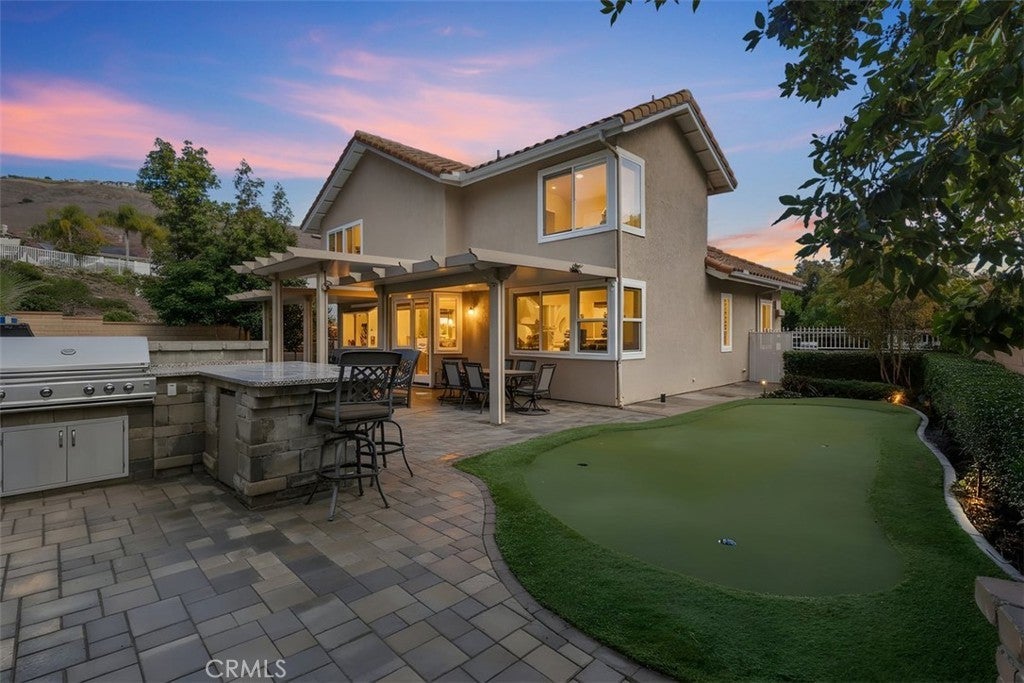 Elegant Family Home with Resort-Style Backyard on a Spacious Lot Nestled on a generous ~9,100 sq. ft. lot in a serene, established neighborhood, this elegant residence offers 2800+ sq. ft. of living space across two stories. With 4 bedrooms and 3 bathrooms, it combines space, comfort, and style—perfect for relaxed family living and elegant entertaining. At the heart of the home, a chef-caliber kitchen featuring a WOLF cooktop and double oven, opens seamlessly to the family room and main living areas, creating an ideal flow for gatherings and indoor-outdoor living. The primary suite provides a luxurious retreat with double-door entry, dual walk-in closets, a sitting area, and a spa-inspired en-suite bathroom. The additional bedrooms are generously sized, including one conveniently located on the main level next to a ¾ bath—a perfect setup for guests or multi-generational living. Step outside to your private backyard oasis: a sparkling saltwater pool and spa with rock waterfall and slide, a golf putting green, and a built in BBQ with refrigerator and Bar offering true resort-style living. Additional highlights include a 3-car garage, RV parking, and a quiet cul-de-sac location within a community celebrated for its family-friendly atmosphere and top-rated schools. *Some of the photos have been virtually staged or professionally altered*