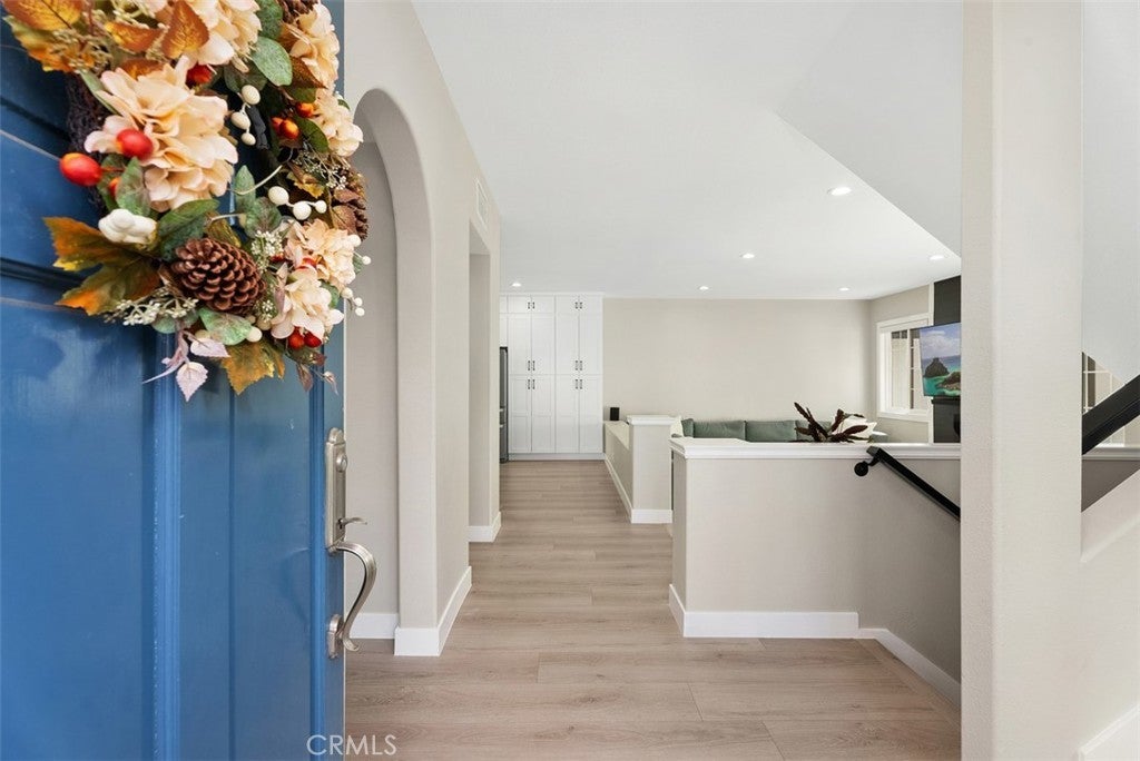 Experience the best of coastal living in this beautifully remodeled 4-bedroom, 3.5-bath home located in a gated community within one of Huntington Beach’s most desirable neighborhoods. Natural light fills the open floor plan, highlighting new luxury waterproof vinyl flooring, recessed lighting, remote-controlled blinds, and a custom electric fireplace that adds warmth and style. The kitchen is the heart of the home, featuring quartz countertops, sleek cabinetry, and premium stainless-steel appliances. It opens to the living room, creating a seamless flow for entertaining and everyday comfort. The dining area, located next to the kitchen, offers the perfect space for gatherings and access to the patio off the dining room. A second patio off the living room enhances indoor-outdoor living. Upstairs, the primary suite features a spa-inspired bathroom with a double-sink vanity, deep soaking tub, and elegant finishes. Two additional bedrooms share a full bathroom, with one currently used as an office. Downstairs includes a private ensuite bedroom, laundry room, and a spacious 3-car garage. Community amenities include a pools, spas, BBQ area, and clubhouse. Minutes from Pacific City’s oceanfront shopping and dining, downtown, and the beach.