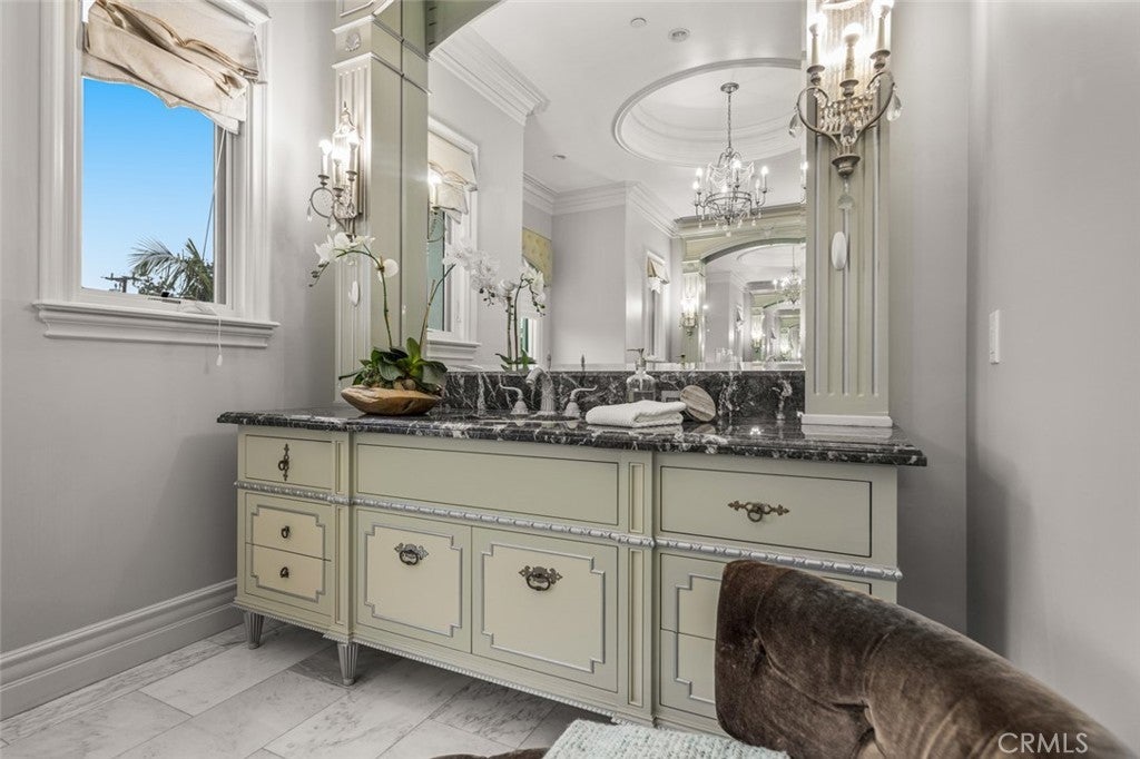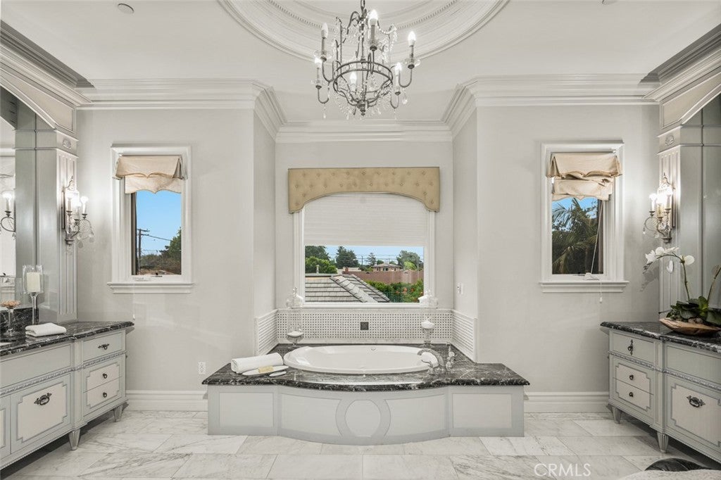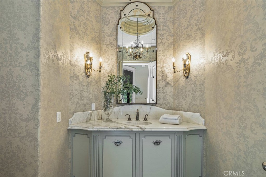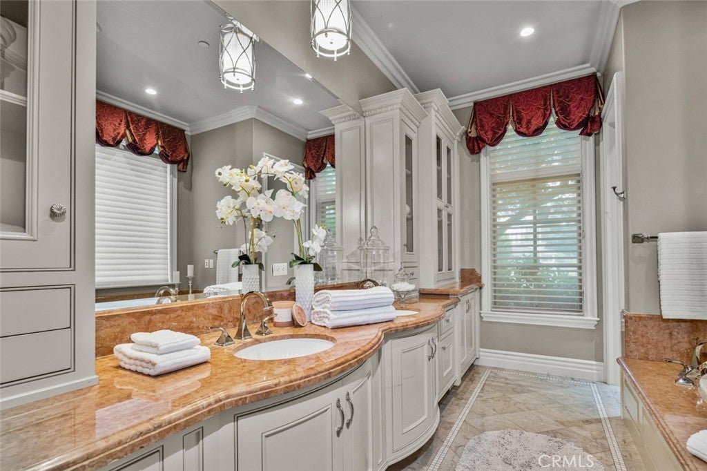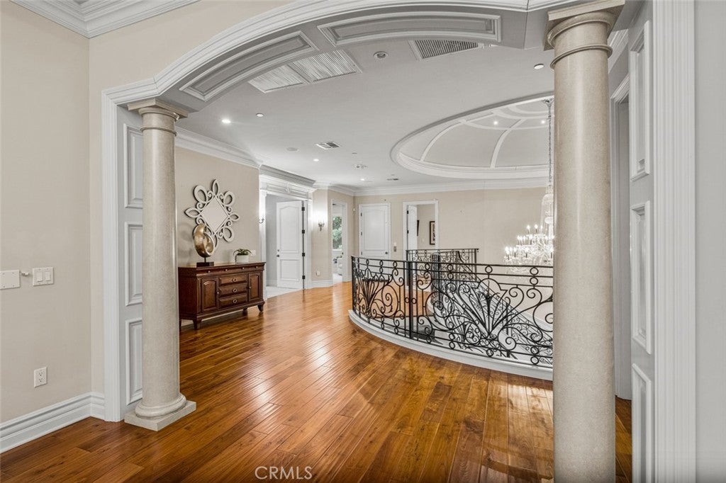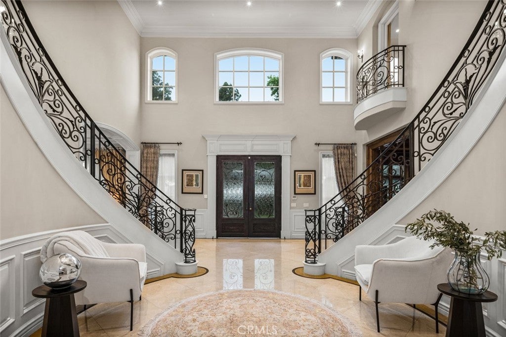 Dramatic, distinctive and undeniably radiant, this stunning custom compound situated within its own private gates provides the perfect blend of classic Renaissance-inspired architecture with today’s conveniences and accoutrements. A dramatic two-story formal entry hall sets the tone for the interiors. From there, a series of wonderfully scaled formal and informal rooms unfold before you. Throughout the spacious interiors, the carefully selected finishes contribute to a feeling of quality, warmth, and comfort. Impressive, yet eminently livable, no other home offers such a unique combination of setting, space, and privacy. The house is complemented by over a half acre of stunning gardens, multiple outdoor living areas, a professional tennis court, and a resort-like pool area ideal for entertaining or enjoying the tranquil setting. Totaling five generously sized bedrooms and six and a half baths, the compound also offers amenities such as a full sized movie theater, private gym, and a sizable reception room. Designed without compromise, this offering includes every imaginable amenity in a setting that is private, spacious, and located in one of Southern California's premier communities.