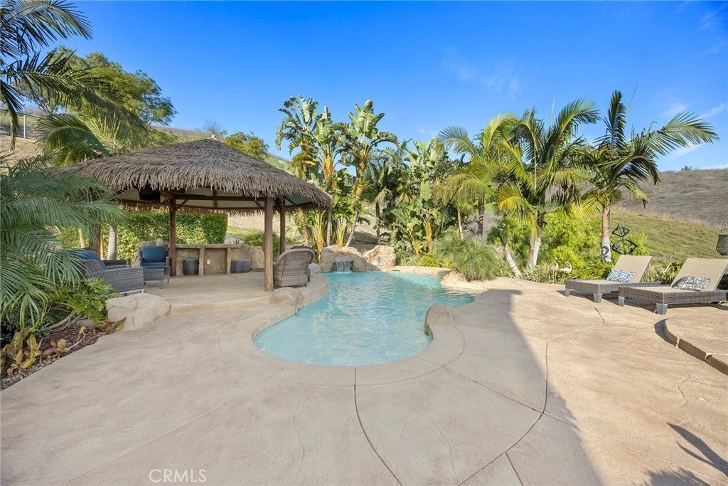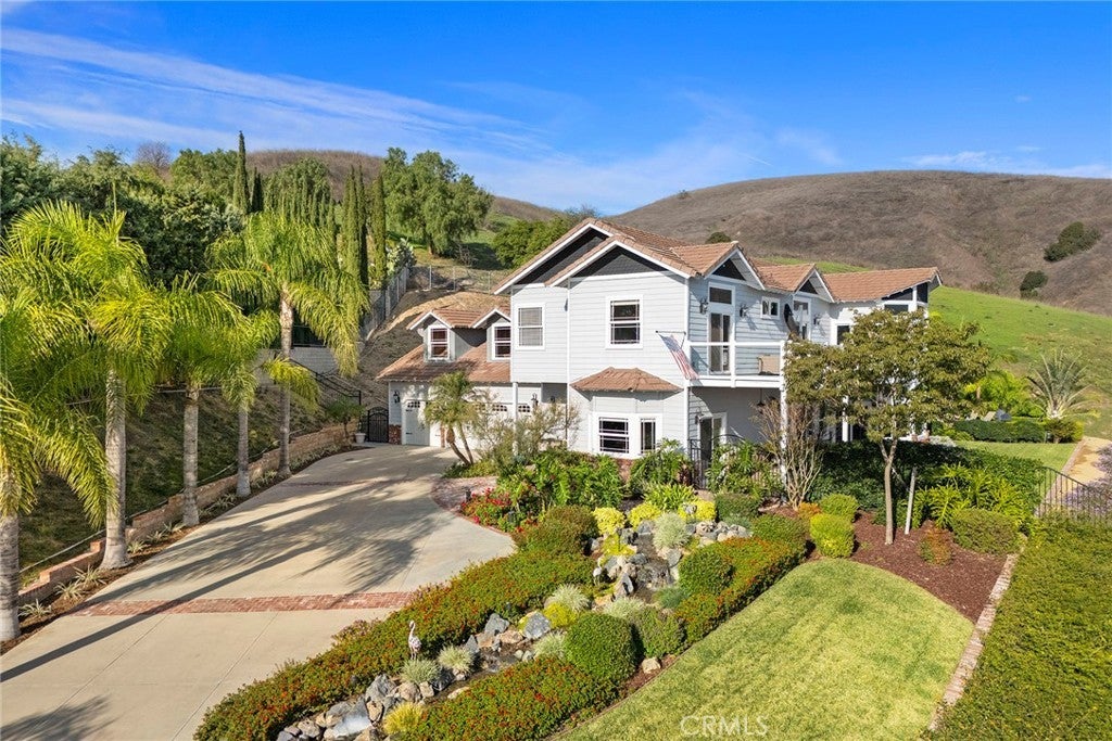 Welcome to this beautifully upgraded 5-bedroom, 3-bath custom home set on 1.70 acres, zoned for horses with a three car garage. Situated at the end of a private street and cul-de-sac, this exceptional property is secluded and peaceful, combining country tranquility with modern luxury and offering breathtaking panoramic views of city lights and rolling hills. The bright open kitchen, features new quartz countertops, making it perfect for gatherings and entertaining. The home also offers excellent functionality with one bedroom and one full bathroom conveniently located downstairs, ideal for guests, multigenerational living, or a private home office. The spacious primary suite upstairs includes a newly remodeled bathroom and provides a relaxing private retreat with a deck to enjoy those unbelievable views. As you step outside to your own private resort oasis featuring a Pebble Tec saltwater pool with natural rock accents and a tranquil waterfall feature. Whether lounging poolside, hosting family and friends, or playing a game of basketball, this outdoor space is made for enjoyment and comfort. The expansive lot offers endless potential — with room to add an ADU (Accessory Dwelling Unit), large RV garage, horse corrals, or many other creative uses. The possibilities are truly endless! Don't miss out on this rare opportunity to own this beautiful Yorba Linda home with land and incredible views!