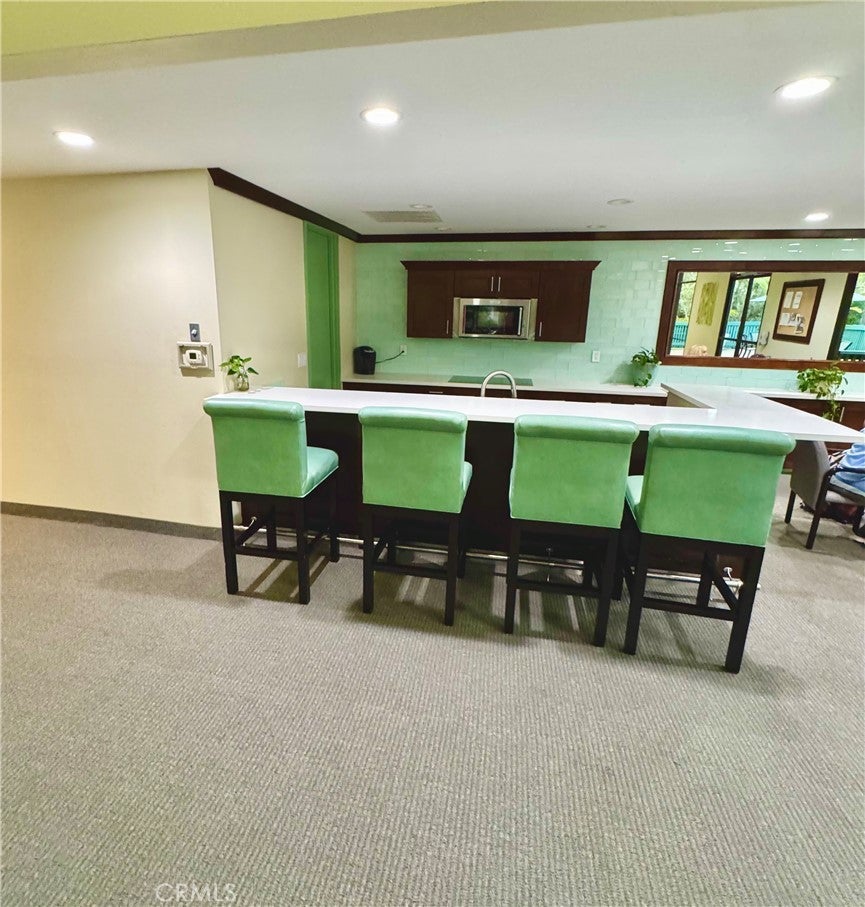 Prime location in Alamitos Heights enjoying lushly landscaped greenbelt and resort-style pool views within the serene gated community of Stoneybrook Villas. Just remodeled, this move-in ready second story one bedroom/one bathroom home boasts granite countertops and tile flooring in the kitchen and bathroom, freshly refinished cabinetry, a breakfast bar, brand new stove/oven, new carpet and fresh paint throughout and more! The generous open dining and living space attracts filtered light and fresh coastal breezes through a large sliding glass door, revealing a peaceful private balcony scene with the greenbelt and pool. A spacious bedroom with walk-in closet contains an additional sliding glass door to the balcony. Other notable features include central heating and A/C, and a dedicated secure garage parking space with storage locker. Step out your door to a bevy of community amenities including: walking paths through mature trees, koi ponds and lush landscaping, a clubhouse with conference rooms and large fitness center with saunas, tennis and basketball courts, resort-style pools and spas, and many outdoor grills/BBQ areas. The Alamitos Heights neighborhood is optimally located with short commutes to areas in Orange and Los Angeles counties. A short walk or bike ride will take you to the beach, countless restaurants, Belmont Shore and Naples, Marine Stadium, CSULB and many community parks/golf courses. Community events are abundant between the weekly farmer’s market at Marine Vista Park, local art, music and food festivals, free classes/workshops and many other ways to stay active. Don’t miss this opportunity to own a home in a newly remodeled, move-in ready and amenity-filled quiet enclave near the beach. Notes: The current monthly HOA amount will be reduced next month and further at closing. This unit is offered unfurnished.