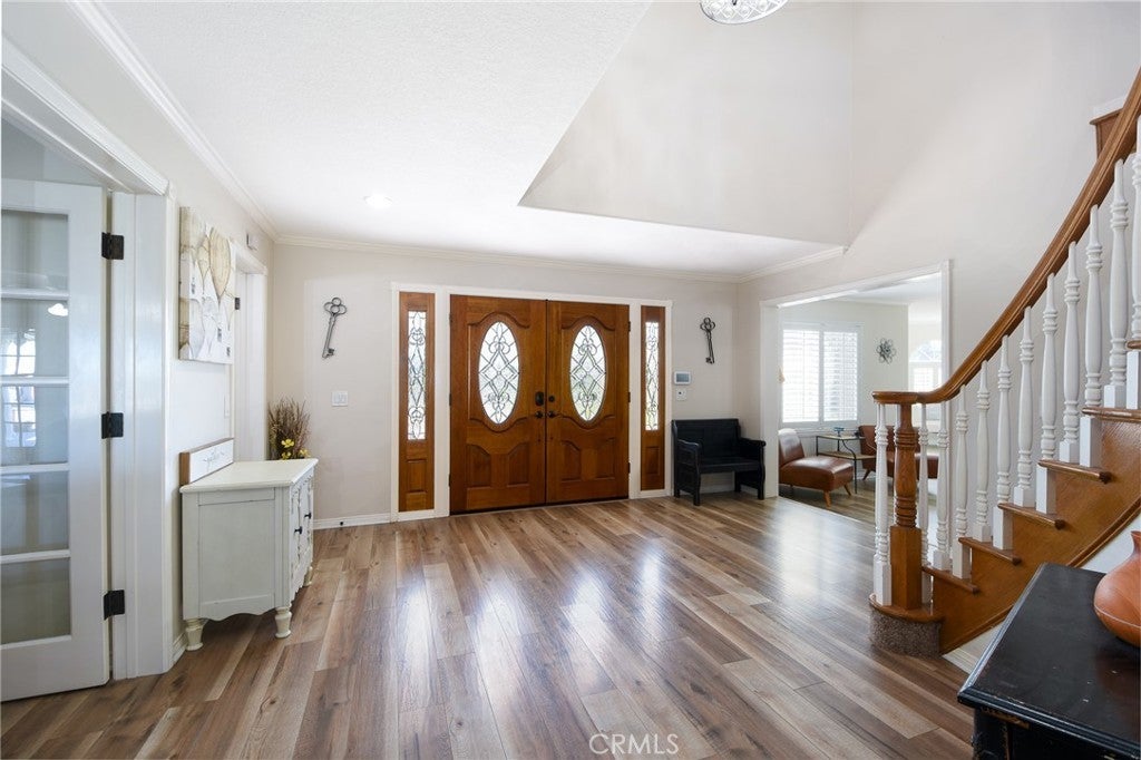 Welcome to Mariposa at Santiago Estates — Temecula's premier luxury estate offering the perfect blend of sophistication, space, and lifestyle with no HOA and low taxes. This stunning 4,533 sq. ft. entertainer's dream home sits on 2.4 usable acres in a peaceful cul-de-sac with panoramic sunset views, annual fireworks sight lines, and true horse property amenities — including a barn and riding arena. Whether you're hosting a crowd or enjoying a quiet evening, this estate was built for the best of both worlds. Inside: 5 bedrooms | 4.5 baths | Next-Gen/In-Law suite with private entry and living area — perfect for extended family or guests | Chef's kitchen with new cabinetry, prep island, designer lighting, and premium appliances | Formal living and dining rooms | Spacious family room with fireplace and built-in bar | Primary retreat with sitting area, fireplace, and spa bath featuring dual sinks, quartz countertops, soaking tub, and walk-in shower | Bonus flex room ideal for a gym, studio, or office. Outside: Resort-style saltwater pool & spa (installed just over 5 years ago) | Alumawood patio cover | Built-in BBQ with outdoor kitchen and dining area | Fire pit lounge | Mature fruit trees — oranges, lemons, limes, figs, avocados, olives, pomegranate, and grapevine | Raised garden beds for farm-to-table living | Detached pool room/office | Horse barn and riding arena on the lower property — ideal for equestrian use or potentially converted to an ADU space. Major Upgrades — the big items are already done: 56-panel paid-off solar system | 400-amp electrical service | Whole house water filtration system | New HVAC | Roof replaced 2022 | New LVP flooring | New water heater | Septic tank & leech lines (installed 2024) | Solar-heated pool | New insulation | 3-car garage | Extended RV parking driveway. Minutes to Old Town Temecula, Wine Country, Pechanga Resort, top dining and shopping. Come experience it for yourself — this one checks every box.