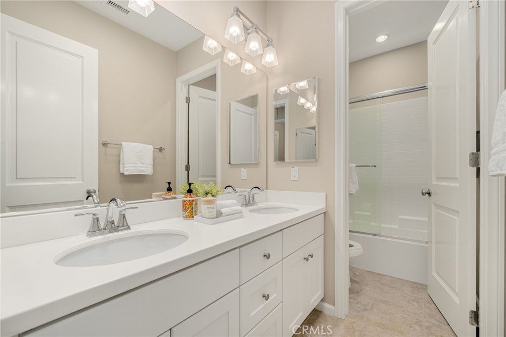 Welcome to 56 Strawberry Grove, a detached residence in the highly desirable Cypress Village community of Irvine. This beautifully maintained 3-bedroom, 2.5-bath home offers approximately 1,567 sq. ft. of light-filled living space designed for comfort and modern functionality. The main level features an open-concept layout with a spacious great room, dining area, and contemporary kitchen showcasing white cabinetry, quartz countertops, stainless-steel appliances, and a large center island—ideal for both everyday living and entertaining. Upstairs, the primary suite includes a walk-in closet and dual-sink vanity. Two additional bedrooms share a full bath, and a versatile built-in desk nook with upper cabinets provides the perfect workspace or study area. A full laundry room and thoughtful storage complete the second level. Residents of Cypress Village enjoy access to resort-style amenities including pools, parks, playgrounds, sports courts, and scenic trails. The neighborhood is served by top-rated Irvine Unified schools—Cypress Village Elementary, Jeffrey Trail Middle, and Irvine High—recognized for academic excellence and community engagement. Conveniently located near shopping, dining, and major freeways, this detached home combines modern design, functional living, and the exceptional lifestyle that defines Cypress Village Irvine.