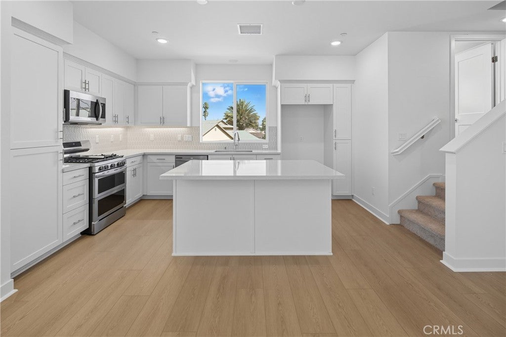 Discover elevated living at Townes at Orange, an exclusive enclave of just 24 brand-new townhomes offering modern design and a prime location near shopping, dining, and major freeways. This move-in ready Plan 4X home features 3 bedrooms + a den, 2 full baths, and 2 half baths across approximately 1,971 sq. ft. of beautifully designed space. Nestled toward the back of the community for added privacy, this upgraded end-unit home offers a bright, open-concept layout perfect for modern living. Enjoy a spacious great room that flows seamlessly into a private balcony, ideal for relaxing or entertaining. The chef-inspired kitchen shines with quartz countertops, a large island, stainless steel appliances, white shaker cabinetry, and designer finishes throughout. The thoughtful floorplan includes a first-floor bedroom with a full bath for guests or a home office, while the upstairs den adds versatility for your lifestyle needs. Additional highlights include walk-in closets, an indoor laundry room with side-by-side hookups, smart home features like a Ring doorbell and smart thermostat, and carefully curated upgrades that bring sophistication and comfort to every space. Move in today and experience the perfect blend of style, convenience, and community living at Townes at Orange.