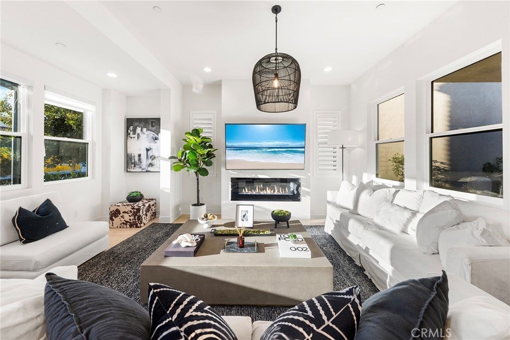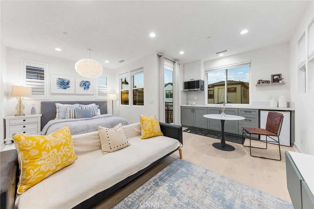 Welcome to 134 Aspect, where contemporary architecture and timeless elegance define the essence of California living. Bathed in natural light and ideally situated within one of Irvine’s most sought-after communities, this stunning home blends sophistication, comfort, and function in every detail. Step inside to discover an open-concept first floor thoughtfully designed with wide-plank hardwood floors, custom wall paneling, Electric window treatments and a sleek modern fireplace — blending warmth, sophistication, and style in perfect harmony. The kitchen flows seamlessly into the dining and living spaces, highlighted by designer lighting and soft natural tones. When the sliding doors open,the indoor and outdoor spaces merge effortlessly, revealing a tranquil central side courtyard that connects every corner of the home with nature — perfect for al fresco dining or quiet evenings under the California sky. A spacious ensuite bedroom on the main level provides comfort and convenience for guests or multi-generational living, while an extra-large under-stair storage area adds practical functionality. Upstairs, huge loft greets you to the primary suite features a luxurious oversized walk-in closet and a private balcony — perfect for morning coffee or sunset relaxation. The JADU studio impresses with its premium finishes, built-in refrigerator, sink, microwave, and range hood, plus a private exterior balcony and staircase and separate entrance — ideal for extended family, guests, or rental income flexibility. The fourth spacious bedroom completes the upper level, highlighted by exceptional natural light and generous scale. The attached two-car garage includes 220V outlet, and a dedicated storage room, adding even more space for organization and lifestyle needs. The premium Chemical reduction and alkaline drinking system protect you from harmness. The home also features a 7.4 kW solar energy system, offering sustainable living and reduced utility costs year-round. Just a short stroll away, residents enjoy access to the beautiful community clubhouse, resort-style pools, and top-rated Irvine Unified schools — including nearby solis elementary and middle school,and Well known Portola high schools, all within walking distance.