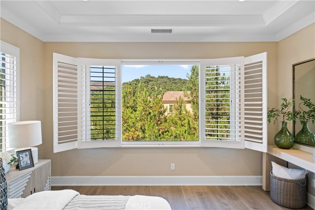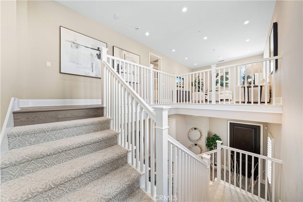Tucked away on a premium corner lot with no neighbors on three sides, this beautifully upgraded 4-bedroom, 4-bathroom home offers both privacy and elevated living in one of Irvine’s most desirable communities. Designed with comfort and flexibility in mind, the open-concept main level features a bedroom with a full bath, ideal for guests or multi-generational living, along with a spacious great room and a chef-inspired kitchen showcasing quartz countertops, designer backsplash, and custom cabinetry. Upstairs, the home continues to impress with a generous primary suite, two additional en-suite bedrooms, and a versatile loft perfect for a home office, media space, or playroom. Throughout the home, thoughtful upgrades include engineered hardwood flooring upstairs, premium tile and fixtures, plantation shutters, whole-house water filtration, and a security system. Enjoy sweeping mountain and city views from the upper level—on clear nights, even catch a glimpse of Disneyland’s fireworks from the comfort of home. The spacious side yard offers ample room for outdoor entertaining and gardening. Set within a resort-style community featuring a pool, spa, clubhouse, parks, and walking trails, and located in the award-winning Northwood High School district, this exceptional home offers the perfect blend of location, layout, and lifestyle.