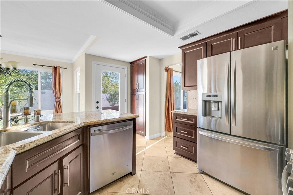 Beautiful Villa Del Rio View Home for Lease! Experience privacy, comfort, and inspiring views in this beautifully maintained property, ideally situated on a premium lot with no homes behind. From the dramatic double-door entry, the home opens to a spacious interior with soaring cathedral ceilings, ceramic tile and laminate flooring, built-in cabinetry, and an elegant formal living and dining area; perfect for everyday living or entertaining. The well-equipped kitchen features granite countertops, stainless steel appliances, a breakfast bar, cozy dining nook, and generous storage. Additional upgrades include 20" travertine tile and double-pane windows and doors installed for added comfort and energy efficiency. The primary bedroom showcases sweeping views, and the master bathroom now features a new vanity for an updated, fresh feel. The downstairs bathroom also includes a new vanity and mirror. Outside, the extended patio, grassy yard, and side yard offer excellent outdoor living and relaxation space. Central air conditioning, a fire sprinkler system, attic storage, and a full driveway add to the convenience and comfort of this rental home. Dogs and pets are family here; your beloved companions are warmly welcomed! Tenants pay for all utilities except HOA dues. Located along the scenic Santa Ana trail; ideal for walking, jogging, or biking; and less than a mile from the highly regarded Bryant Ranch Elementary School. Enjoy easy access to the 91 freeway, just minutes away. This exceptional home is ready for tenants who will appreciate its setting, updates, and pet-friendly lifestyle amenities. https://www.wellcomemat.com/video/54fb3d3f208b1mdnh/OC25135318/