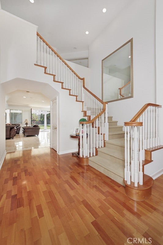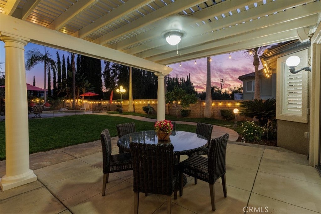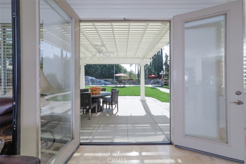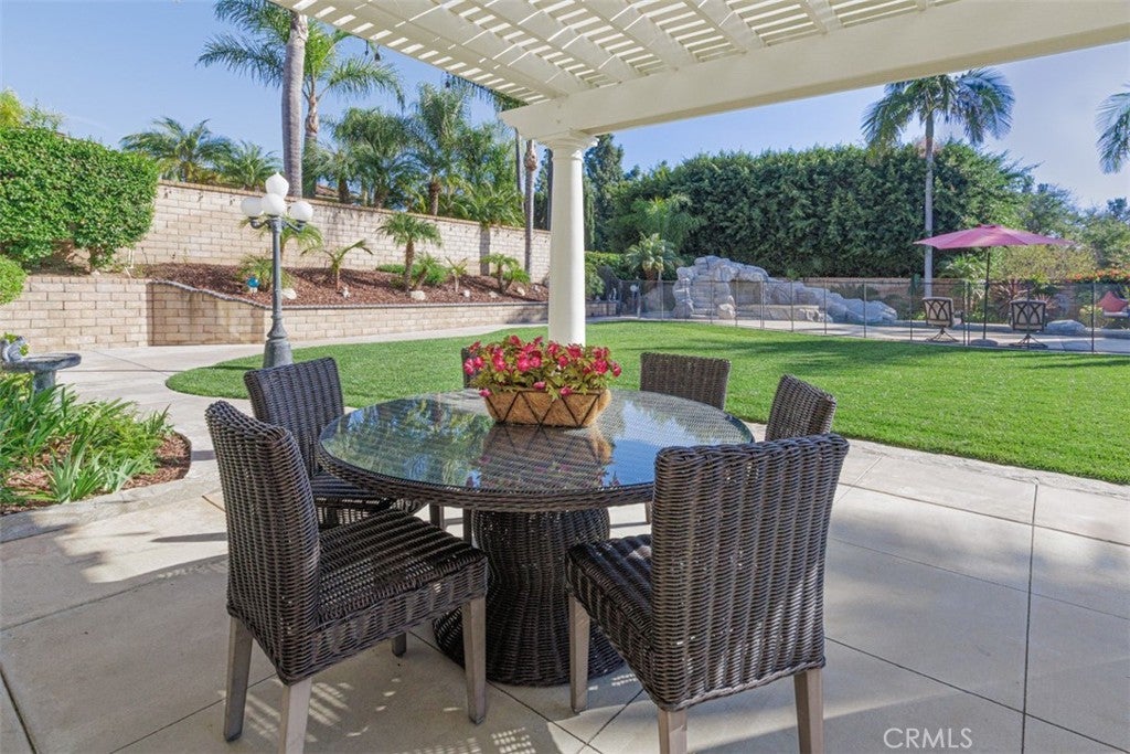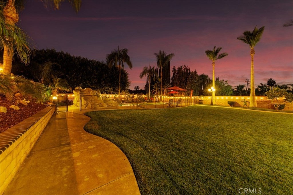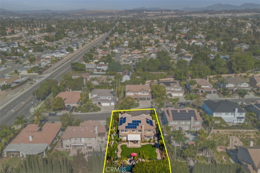 Welcome to this stunning FORMER MODEL HOME in the coveted Neff Ranch community of Yorba Linda. Spanning 3,893 sq ft, this 6-bedroom, 4.5-bath residence sits on an expansive approximately 13,106 sq ft lot, blending spacious design, timeless elegance, and modern comfort. As soon as you enter, you’re welcomed by a grand two-story foyer that sets the tone for the home’s open and inviting layout. The main level showcases beautiful hardwood and travertine flooring, plantation shutters, crown molding, and wainscoting in the living and dining rooms. The family room features built-in surround sound, complemented by outdoor speakers that extend the entertainment experience to the backyard. The gourmet kitchen offers newer KitchenAid appliances, an oversized walk-in pantry, and a bright breakfast nook. A downstairs en-suite bedroom and a laundry room complete this level. Upstairs, the expansive primary suite includes a large walk-in closet with built-in organizers and a renovated bathroom featuring a walk-in shower with dual shower heads and a soaking tub. The secondary bedrooms with walk-in closets are generously sized, including a large en-suite bedroom that can serve as a junior primary suite. The massive backyard is designed for entertaining. A covered patio with a ceiling fan offers a shaded retreat, while the sparkling pool with a rock slide and a waterfall flowing into the spa creates a private resort-style atmosphere, perfect for relaxing or hosting gatherings. Additional highlights: newer AC units, a water softener system, a tankless water heater, and solar panels for enhanced comfort and efficiency. Located on a cul-de-sac street within the award-winning Placentia-Yorba Linda Unified School District, this home offers easy access to walking trails, community parks, shopping, dining, and freeways. NO HOA and NO Mello-Roos. Don’t miss the opportunity to make this remarkable home yours!