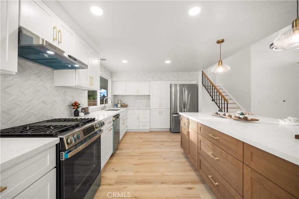 Welcome to 25202 Arcadian Avenue — a fully renovated 4-bedroom, 3-bathroom nestled in one of Mission Viejo’s most desirable communities. This is a high-end finishes throughout, perfect blend of style, comfort, and quality. Step inside to an expansive, light-filled layout featuring a formal living room, formal dining room, and a separate family room. The heart of the home is the open-concept kitchen, redesigned to include a large entertainer’s island, quartz countertops, custom soft close cabinetry. The private primary suite features a luxurious a suite bathroom plus a romantic balcony. Additional upgraded features include A/C and re-piping. This house making this a truly unique opportunity. The generous lot provides ample space and privacy to relax by the a pool. The backyard oasis is ideal for al fresco dining or hosting guests in style. All renovations were completed by a licensed general contractor. Located near top-rated high schools, parks, shopping and dining. NO HOA, LOW TAXES and NO MELLO ROOS!!MUST SEE!