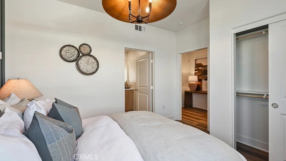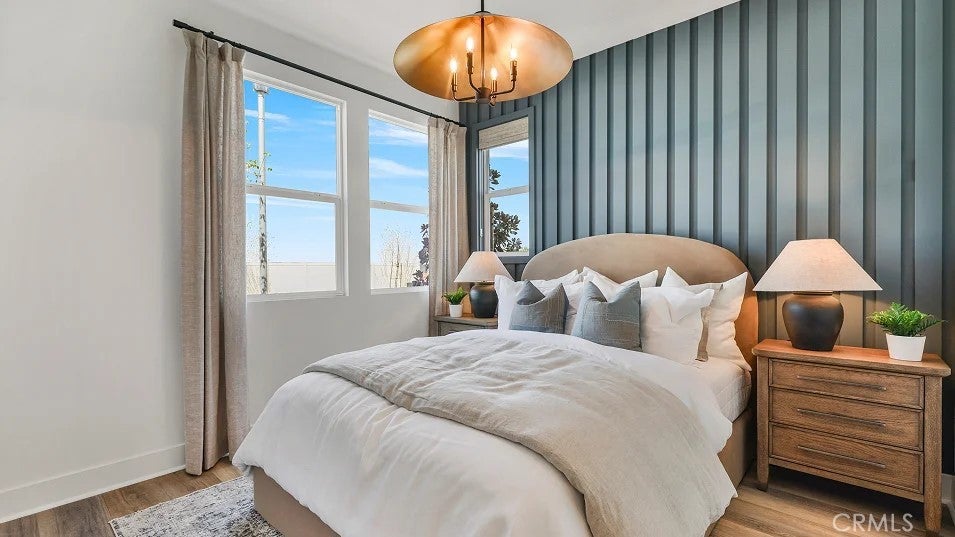 Open-concept end-unit in dynamic Platinum Triangle neighborhood of Anaheim. Close to Angel Stadium, Honda Center, Disneyland, and highly-anticipated OC Vibe development. The community also has great freeway access for commute to Los Angeles or South Orange County. This home has four bedrooms with one bedroom on the first level.