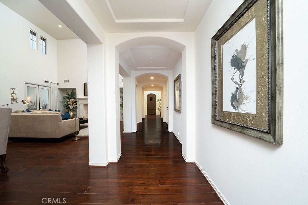 60 New Dawn is expertly crafted by Taylor Woodrow and ideally situated in the heart of Northwood Pointe. This stunning residence features exceptional craftsmanship and innovative design, highlighted by the spacious downstairs primary suite at Rose Gate Estate. Located on a quarter-acre lot, it offers one of the largest parcels in this exclusive gated community. The meticulously landscaped yard showcases lush greenery, custom hardscaping, striking water features, and a pool and spa with cascading waterfalls, creating an idyllic setting for this exquisite home. Interior highlights include rich hardwood flooring, a luxurious master closet with custom built-ins, plantation shutters throughout, artfully designed lighting fixtures, and elegant crystal chandeliers. This property truly encompasses everything one expects in luxury living – a hidden oasis that’s definitely worth a visit.
