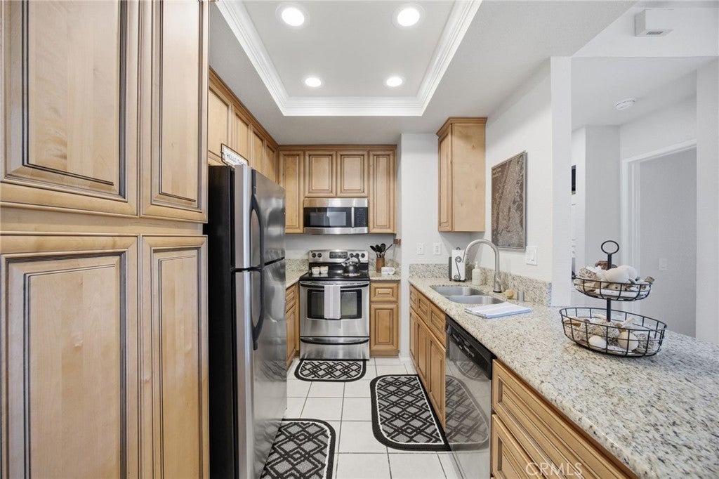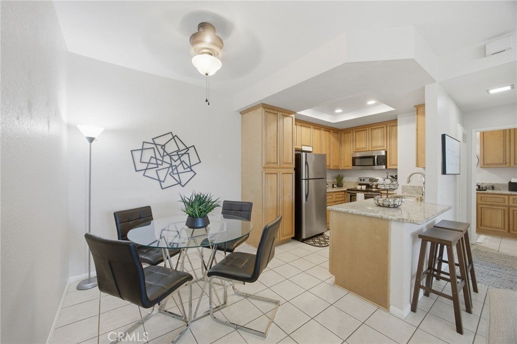 This is a charming location in Mission Courts II community with large enclosed front patio and a garage! Located in close proximity to Rancho Santa Margarita Beach Club/Lake, Santa Margarita Catholic School, Saint Serra Catholic, trails and stunning views of the Saddleback Mountains. Private enclosed front patio, ideal for entertaining guests, relaxing outdoors, or providing a safe and comfortable space for a small pet. The kitchen has granite countertops, automatic faucet, and stainless steel appliances. The spacious bathroom offers comfort and elegance, while the bedroom features a custom built-in closet system/mirrored wardrobe doors and a built-in desk—perfect for working from home, gaming or just staying organized. Additional highlights include an in-unit washer and dryer, refrigerator, storage and an enclosed garage with storage. This complex has pool/spa and kiddie park. Enjoy the vibrant Rancho Santa Margarita lifestyle with nearby shopping, dining, parks, and scenic trails, along with access to community amenities such as pools, the Beach Club Lagoon, and sports courts. Trash included in HOA.