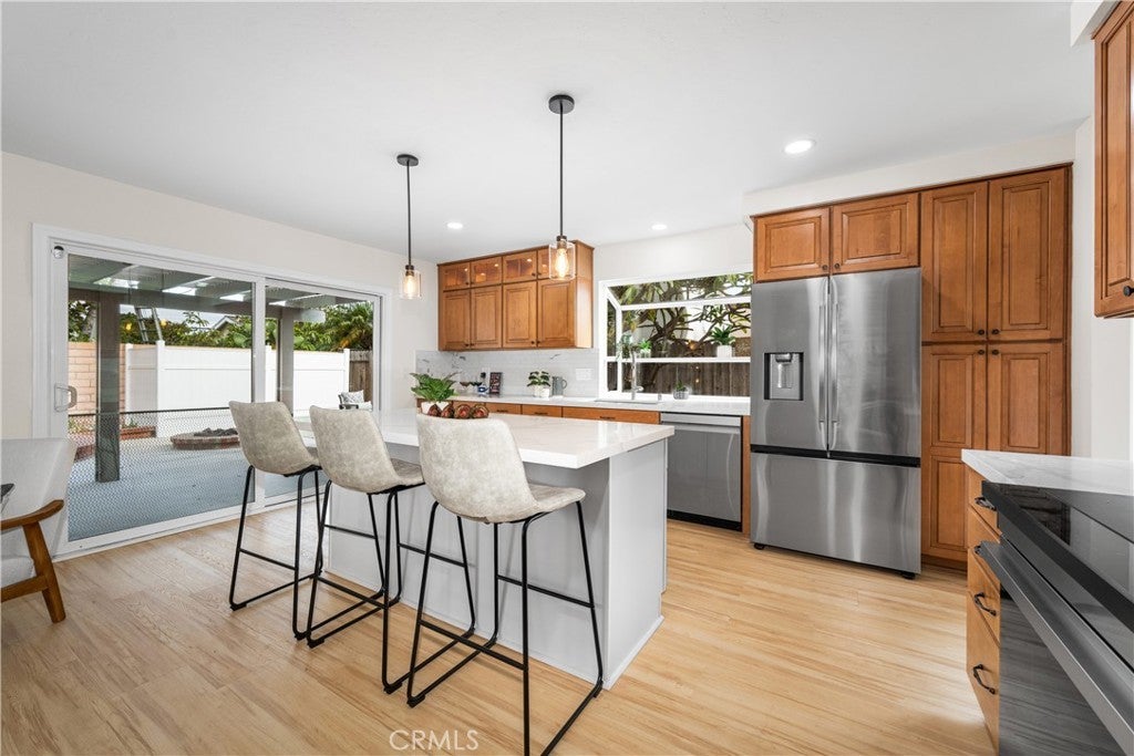 Welcome to a beautifully re-imagined single-level home on a quiet cul-de-sac in one of Costa Mesa’s most desirable neighborhoods. Thoughtfully and fully renovated inside and out, this three-bedroom, two-bath residence combines modern design with everyday comfort and efficiency. The kitchen features custom cabinetry (uppermost cabinets have LED lights), quartz counter tops, all-in-one stainless steel sink with a spring neck faucet, stainless-steel appliances, induction range, and a generous window overlooking the garden. The kitchen is part of the open-concept great room including a a large island with pendant lighting, cozy fireplace, and warm hue vinyl plank flooring (Lifeproof). Blending the family room and kitchen gives this home an inviting space next to the private backyard oasis system—perfect for year around entertaining. The backyard has a sparkling pool and spa, new vinyl fencing for pool equipment, solar-assisted pool heating, refreshed landscaping, and brick coping, . Two remodeled bathrooms have new vanities, designer fixtures, modern tilework, and bright LED lighting. The primary bathroom has a frameless vanity mirror with touch light and anti fog. The home updates also including dual-pane windows, recessed lighting, ceiling fans, and fresh interior and exterior paint. Two-car garage with built-in shelving, above car storage, and washer/dryer connections. Nestled near Baker between Bear and Fairview, this home offers quick access to South Coast Plaza, The Camp & The LAB, OC Fairgrounds, and top Costa Mesa schools. Convenient to beaches, freeways, and John Wayne Airport—an ideal blend of tranquility and connectivity. A prelisting home inspection report is available.