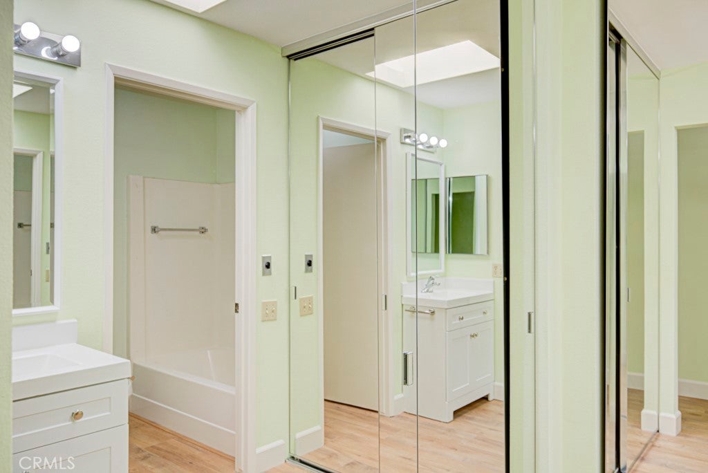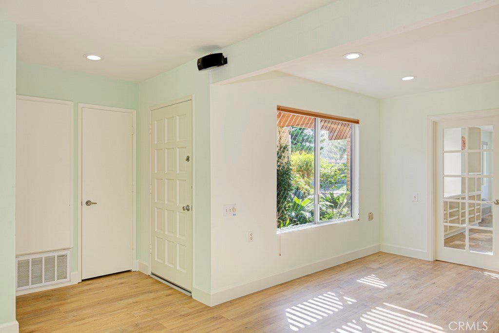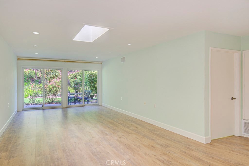 Welcome to 3255-B San Amadeo – an expanded single-level two-bedroom, two-bath EL DOBLE residence in the gated Laguna Woods senior community. This floorplan boasts approximately 1500 sq. ft. of living space with two large primary bedrooms separated by a spacious living room. There is a multi-purpose bonus room situated just off the dining area. This large bonus area could serve as a casual TV/family room, home office, arts and crafts studio or workout area. This property features smooth ceilings, skylights, recessed lighting and ceiling fans. The small patio off the living room looks out onto a narrow greenbelt and is a comfortable outdoor space for entertaining, dining and relaxing. The one-car attached garage provided convenient direct access into the residence through a service door into the kitchen. There are washer-dryer hookups and built-in shelving in the garage. The driveway can accommodate one additional vehicle plus there is ample street parking for guests. This home is a tremendous opportunity for a new owner to bring their own design ideas to this property to create a customized showcase home. Do not miss!