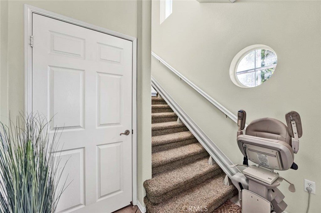Welcome to a home designed for effortless living. Nestled within a quiet, well-kept 55+ community where neighbors enjoy peaceful morning and evening strolls, this beautifully maintained two-story residence combines elegance with practicality. Built in 2004 and thoughtfully upgraded, the home features a stair lift for easy access between floors and an attached two-car garage with side-by-side parking. Inside, 1,980 square feet of light-filled living space awaits. The open floor plan seamlessly connects the living and dining areas, anchored by a cozy fireplace. A private balcony invites you to relax with gentle breezes and serene views. The kitchen is both stylish and functional, showcasing white cabinetry, Corian countertops, and a breakfast bar with ample workspace. The primary suite offers a true retreat with a walk-in closet and a remodeled bath featuring a low-step entry for safety and comfort. Two additional spacious bedrooms provide flexibility for guests, a home office, or hobbies. A hallway bath with shower-over-tub and a private laundry room complete the thoughtful layout. Step outside to enjoy the community’s resort-style amenities: a sparkling pool, heated spa, and outdoor BBQ area perfect for gatherings. The clubhouse provides a welcoming space for social events, while HOA services—including exterior maintenance, roof care, and landscaping—are all covered for just $308/month. Prime Location Close to the beach, Mile Square Park, and golf courses Minutes from the 405 freeway This move-in-ready residence offers relaxation, accessibility, and a warm sense of community. Experience the lifestyle you’ve been waiting for!