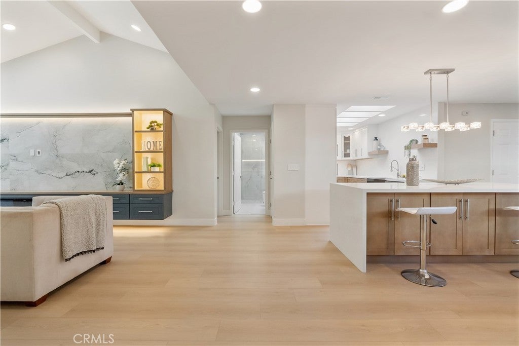 Discover this stunning, expanded, and beautifully remodeled Navarro model. Nestled in a quiet cul de sac close to Barbara Lake. The popular floorplan features two spacious Primary bedrooms and a generous central living room, perfect for relaxing or entertaining guests. The impressive curb appeal is complemented by meticulously landscaped entry area with custom lighting and an impressive modern glass and wood front door that welcomes you and your visitors. Completely renovated with high end finishes, appliances, fixtures and a beautiful new room addition of over 300 square feet. This versatile bonus room off the dining area offers additional space to serve as a TV lounge, den, or home office. The central living room with high ceilings showcases a beautiful wood and marble media wall with custom lighting, electric fireplace and abundant storage. The thoughtfully designed chef’s kitchen is a culinary delight, with abundant cabinet and counter space, upgraded appliances, quartz countertops and waterfall island. Both bathrooms exude luxury with custom wood cabinetry, quartz counters, and walk-in showers featuring frameless doors, linear drains, and convenient shelves. Find out why Laguna Woods Village is one of the best retirement communities in CA. Residents Enjoy the 27-hole championship golf course and the 9-hole executive par three course, tennis, pickleball, paddle tennis, lawn bowling, two fitness centers, seven clubhouses, five swimming pools, an equestrian center, gardening areas, an art studio, a world-class woodshop, and more than 200 clubs and organizations. There is a community bus service to nearby shopping, RV storage area, club sponsored live entertainment, and you are less than 7 miles from beautiful Laguna Beach. Country club living at its best and the best hidden secret in Orange County.