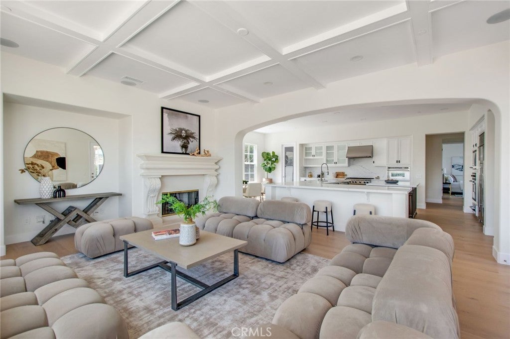 Beamed Ceilings, Breakfast Bar, Built-in Features, Breakfast Area, Separate/Formal Dining Room, High Ceilings, Open Floorplan, Pantry, Quartz Counters, Recessed Lighting, Two Story Ceilings, Bedroom on Main Level, Dressing Area, Primary Suite, Utility Room, Walk-In Pantry, Walk-In Closet(s)