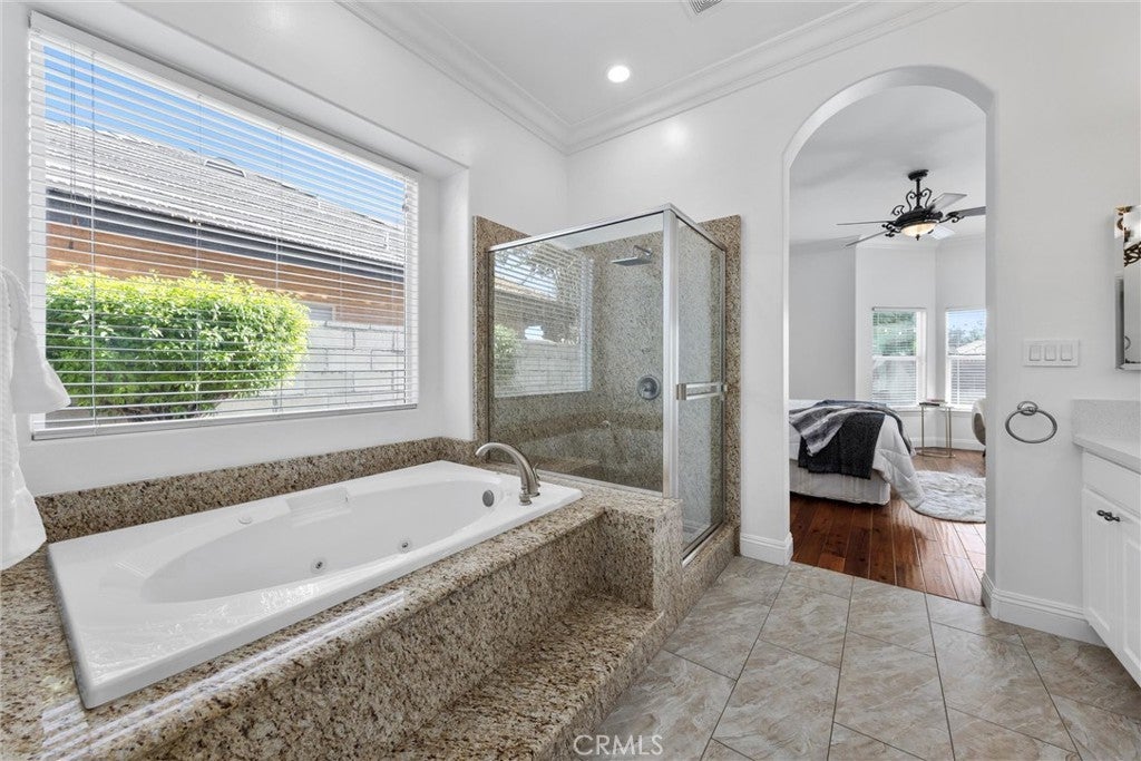 Breakfast Bar, Ceiling Fan(s), Crown Molding, Separate/Formal Dining Room, Eat-in Kitchen, High Ceilings, Country Kitchen, Open Floorplan, Pantry, Pull Down Attic Stairs, Quartz Counters, Recessed Lighting, Storage, Unfurnished, Wired for Data, All Bedrooms Down, Attic, Bedroom on Main Level, Entrance Foyer, Main Level Primary, Multiple Primary Suites