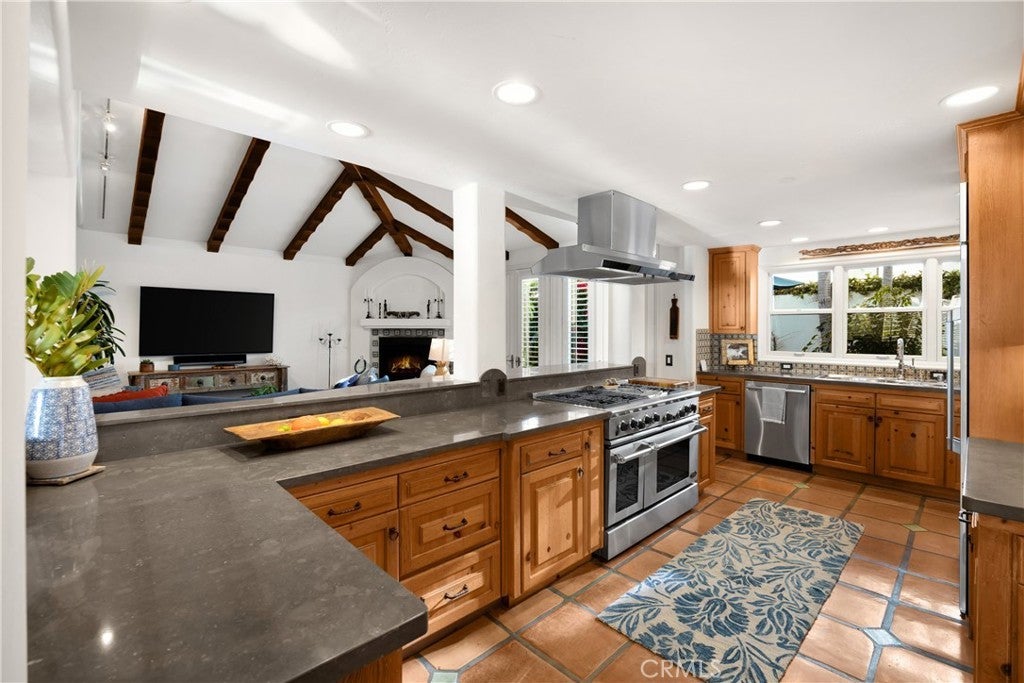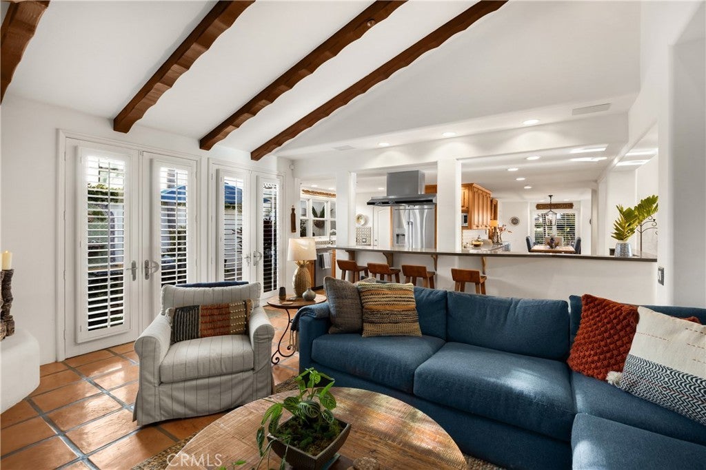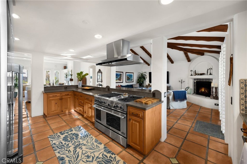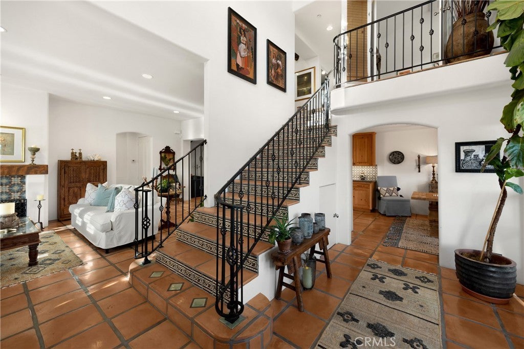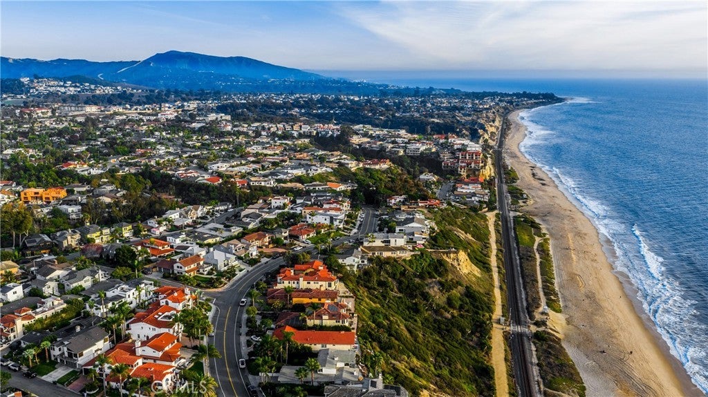 Positioned on Lasuen’s most coveted oceanfront street, this iconic Spanish revival is a showpiece residence. Embodying Ole Hanson’s “Spanish Village by the Sea,” this exquisite offering demands attention with its prominent corner lot location at locals’ favorite beach, ‘Lost Winds’. Dressed in exotic landscaping, the home truly catches the eye. A few properties from the beach access nearby, this home is the quintessential Southwest beach house, just steps from the sand. Featuring four spacious bedrooms (one on lower level) & three bathrooms, this is the ideal floor plan. The chef’s kitchen combines functionality & style with new accent tile, rustic wood cabinetry, stone counters & bar seating, all with top-of-the-line stainless appliances. The kitchen is open to the dining, living & family rooms. Beautiful Spanish fireplaces warm these spaces. Ornate beamed ceilings exaggerate the ascending ceilings in the family room. Spanish tile enhances the stairwell, kitchen backsplash & fireplaces, adding texture & stylish detail throughout. The ocean-view primary suite is simply amazing. Featuring vaulted ceilings, fireplace with reclaimed mantle, dual walk-in closets, a newly-remodeled en-suite bathroom, it’s beyond comfortable. Recently reinvented, the bathroom offers all-new tile, shower enclosure, vanities, fixtures, & stand-alone tub. Through the arched French doors, an ocean-view deck captures views of seal rock, vibrant sunsets, Catalina & the crisp horizon. Also remodeled in Spanish fashion with stylish finishes, the upper guest bath services two generous guest bedrooms with walk-in closets. Newer upgrades & values include: newer custom-built gates, recessed lighting & carpet, refinished ornate wooden front door, a brand-new furnace, outdoor shower, & no overhead power lines. Multiple French doors allow natural light through the home with high ceilings accentuating several interior spaces. Three downstairs patios offer unique outdoor living settings - one covered, ideal for outdoor dining & lounging. Finished in exotic stone & landscaped with mature plantings, the intimate rear patio enjoys a tiled fountain. Walk to Leslie Park or the beach at ‘Lost Winds’ below, take the 2.5 mile beach trail to restaurants, coffee shops, bars, & the iconic SC Pier. A fun bike ride to world-class surf at Trestles. This is an opportunity to make locals' favorite ‘Lost Winds’ beach your backyard at this ideally-located Southwest Spanish beach house!
