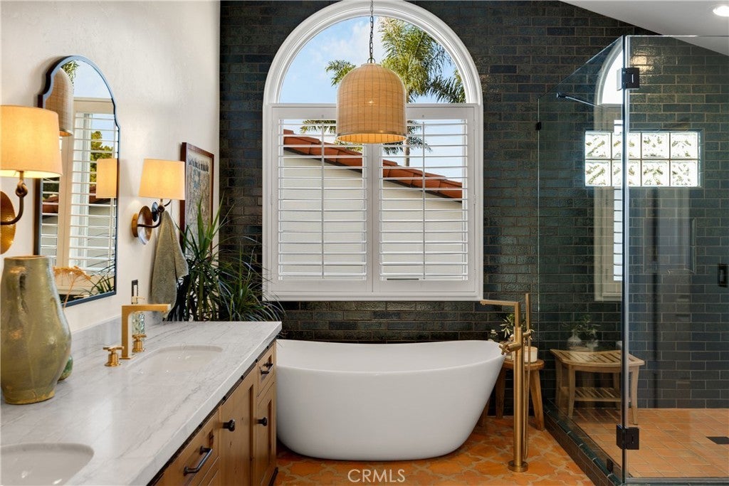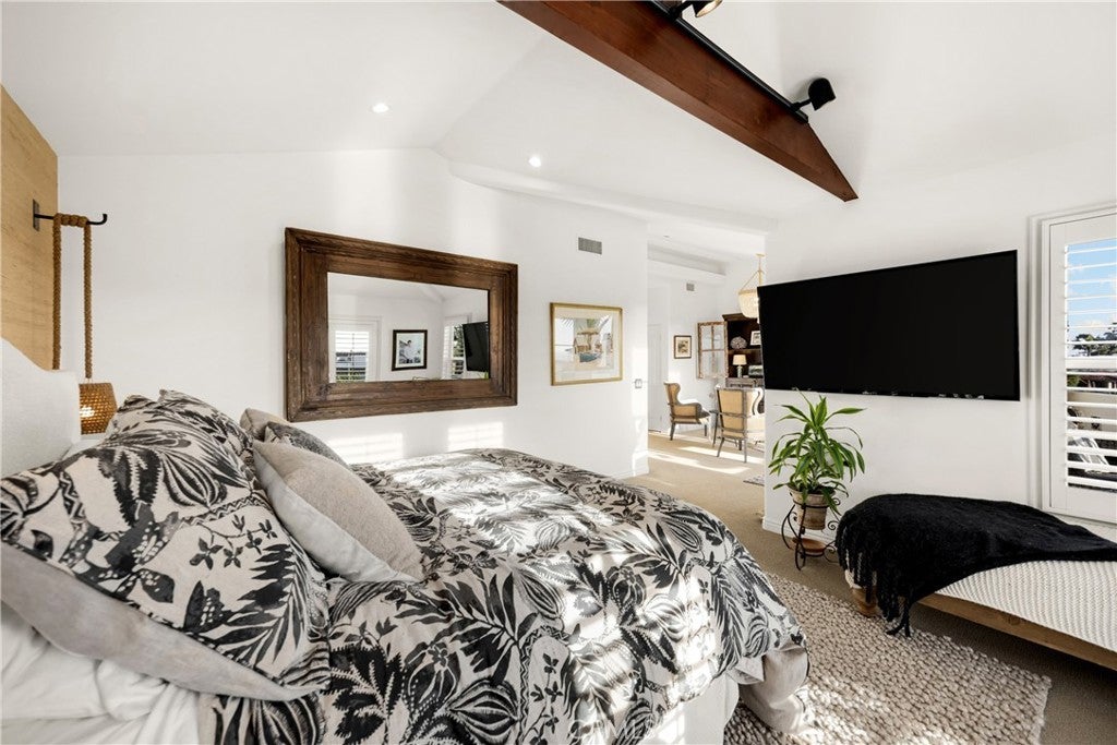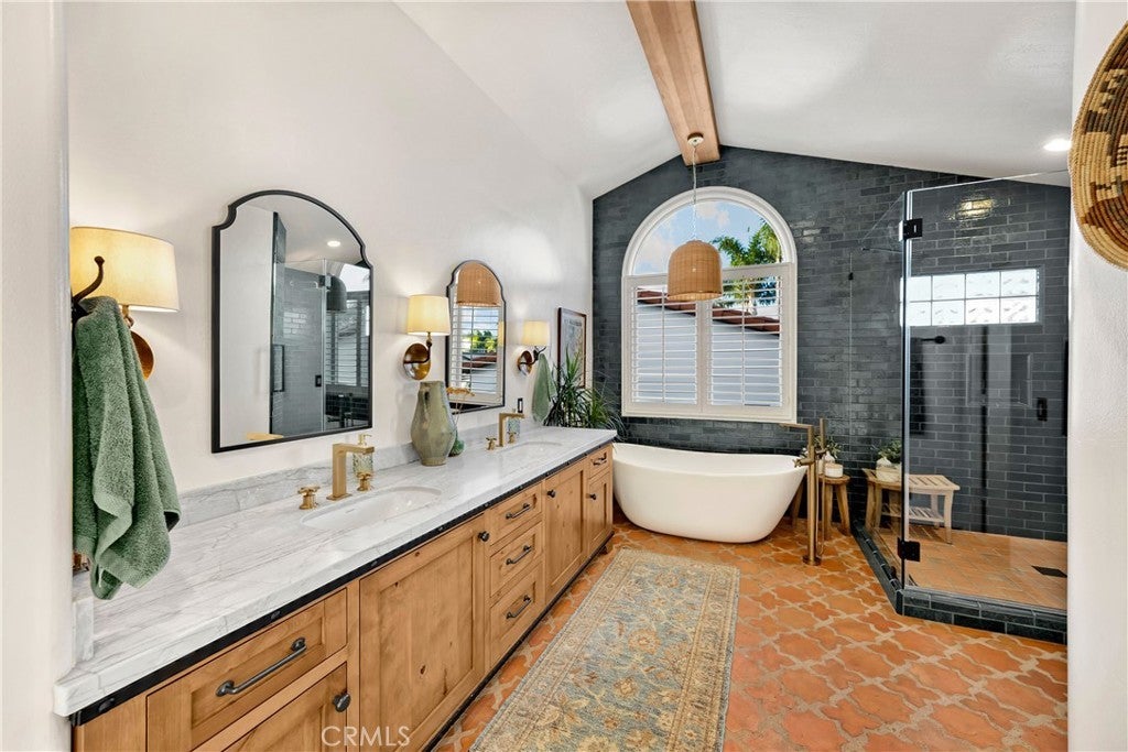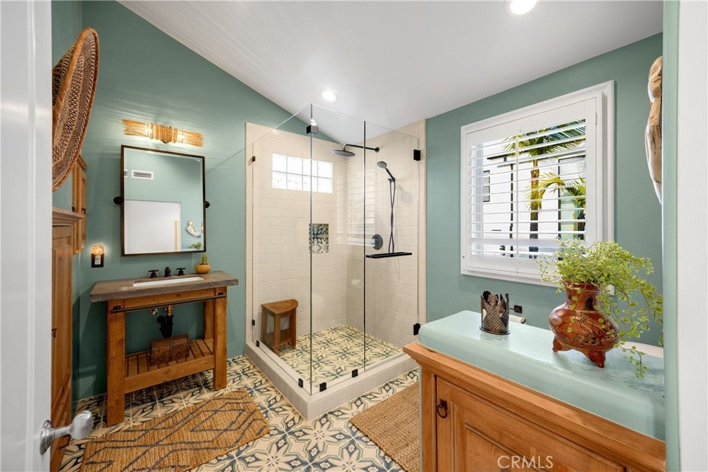 Positioned on Lasuen’s most coveted oceanfront street, this iconic Spanish revival is a showpiece residence. Embodying Ole Hanson’s “Spanish Village by the Sea,” this exquisite offering demands attention with its prominent corner lot location at locals’ favorite beach, ‘Lost Winds’. Dressed in exotic landscaping, the home truly catches the eye. A few properties from the beach access nearby, this home is the quintessential Southwest beach house, just steps from the sand. Featuring four spacious bedrooms (one on lower level) & three bathrooms, this is the ideal floor plan. The chef’s kitchen combines functionality & style with new accent tile, rustic wood cabinetry, stone counters & bar seating, all with top-of-the-line stainless appliances. The kitchen is open to the dining, living & family rooms. Beautiful Spanish fireplaces warm these spaces. Ornate beamed ceilings exaggerate the ascending ceilings in the family room. Spanish tile enhances the stairwell, kitchen backsplash & fireplaces, adding texture & stylish detail throughout. The ocean-view primary suite is simply amazing. Featuring vaulted ceilings, fireplace with reclaimed mantle, dual walk-in closets, a newly-remodeled en-suite bathroom, it’s beyond comfortable. Recently reinvented, the bathroom offers all-new tile, shower enclosure, vanities, fixtures, & stand-alone tub. Through the arched French doors, an ocean-view deck captures views of seal rock, vibrant sunsets, Catalina & the crisp horizon. Also remodeled in Spanish fashion with stylish finishes, the upper guest bath services two generous guest bedrooms with walk-in closets. Newer upgrades & values include: newer custom-built gates, recessed lighting & carpet, refinished ornate wooden front door, a brand-new furnace, outdoor shower, & no overhead power lines. Multiple French doors allow natural light through the home with high ceilings accentuating several interior spaces. Three downstairs patios offer unique outdoor living settings - one covered, ideal for outdoor dining & lounging. Finished in exotic stone & landscaped with mature plantings, the intimate rear patio enjoys a tiled fountain. Walk to Leslie Park or the beach at ‘Lost Winds’ below, take the 2.5 mile beach trail to restaurants, coffee shops, bars, & the iconic SC Pier. A fun bike ride to world-class surf at Trestles. This is an opportunity to make locals' favorite ‘Lost Winds’ beach your backyard at this ideally-located Southwest Spanish beach house!