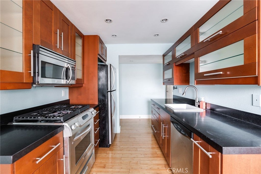 This property boasts a range of high-quality features that are sure to impress. Step inside to find beautiful wood flooring that flows seamlessly throughout the main living areas, creating a warm and inviting atmosphere. The home also features a cozy fireplace, perfect for those cooler evenings. The kitchen is a chef's dream, equipped with sleek stainless steel appliances that add a modern touch. Outside, you'll find a covered patio, an ideal spot for entertaining or simply enjoying the California sunshine. This home truly offers a blend of comfort and style.