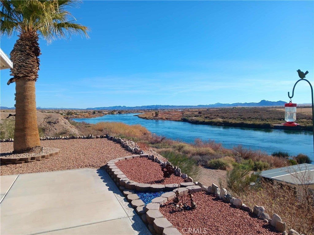 This is the one! One of the best lots in the park. Expansive views of the Colorado River, Valley and distant Parker Mountains. This 3-bedroom 2-bath home has been beautifully remodeled throughout. Situated on a upper lot, this fully furnished property offers privacy, comfort and relaxation. Enjoy the convenience of moving right in with all the furnishings you need for a comfortable and stylish living experience. The large 2-car (air conditioned) garage and double carports provide excellent space for your vehicles and toys. Fully improved yard with built-in BBQ and large covered patio overlook the Colorado River and views beyond! Community Amenities include: 2 Launch Ramps, Courtesy Dock for loading and unloading. Private Docks & Outdoor Storage available. Common amenities include guest RV pads with hook ups, picnic tables, Clubhouse, horseshoe pits, shuffle board, volleyball, and community bathrooms. This home is located in a very well kept and safe park. Local shopping and dining options are nearby. Don't miss this opportunity to make this exceptional property your own. With its modern interior, stunning views, and a community filled with amenities, you'll experience a lifestyle that many only dream of. Schedule your private viewing today!